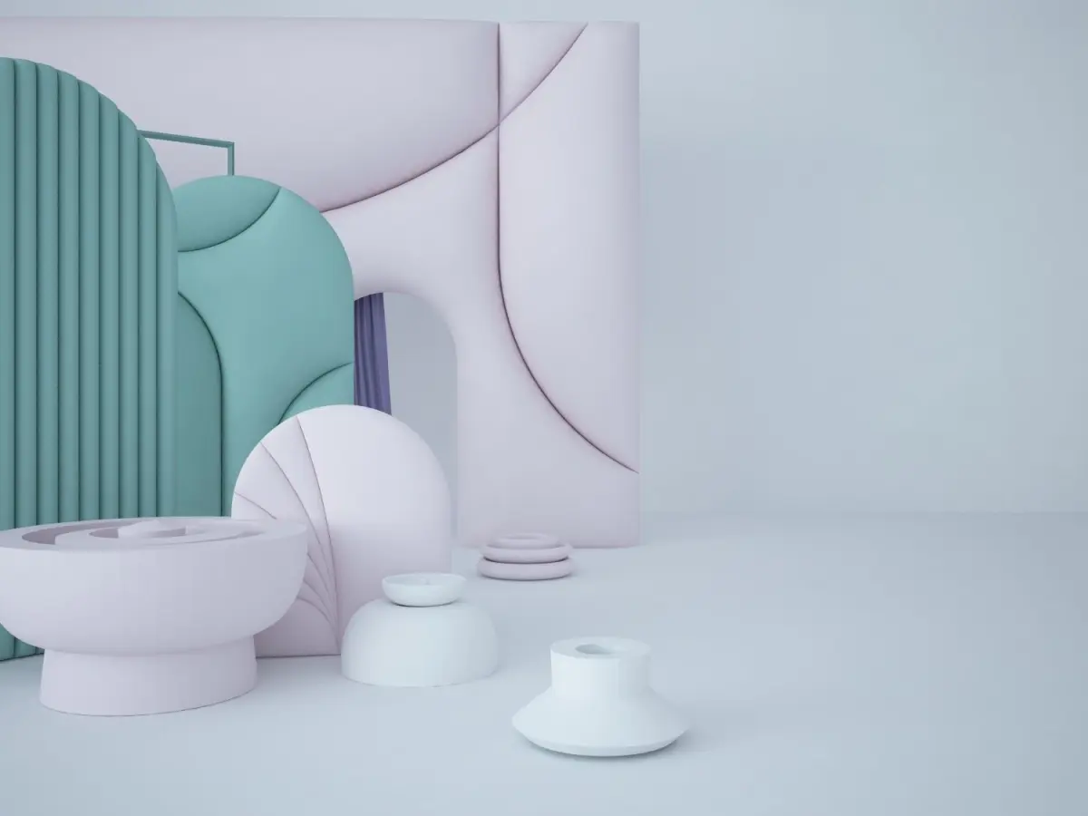 Decorative mint arched panels, decorative wall, curtains and abstract objects in candy style scene. Ready to render and to decorate interior scene room. File mainly in Cinema + Vray and blender. Few ready cameras. Just add Your decoration. Then hit render button. It's that easy! Blender version does not have materials. It is blank for You to fill it as You want.