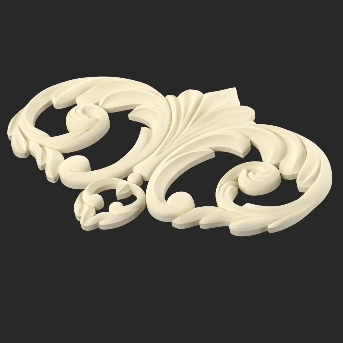 This model was made by me based on my sketch.Floral motif in decorative carving with a mirror image of the elements. The model grid is visible in the preview. The model was not tested on 3D printing and 3D milling.