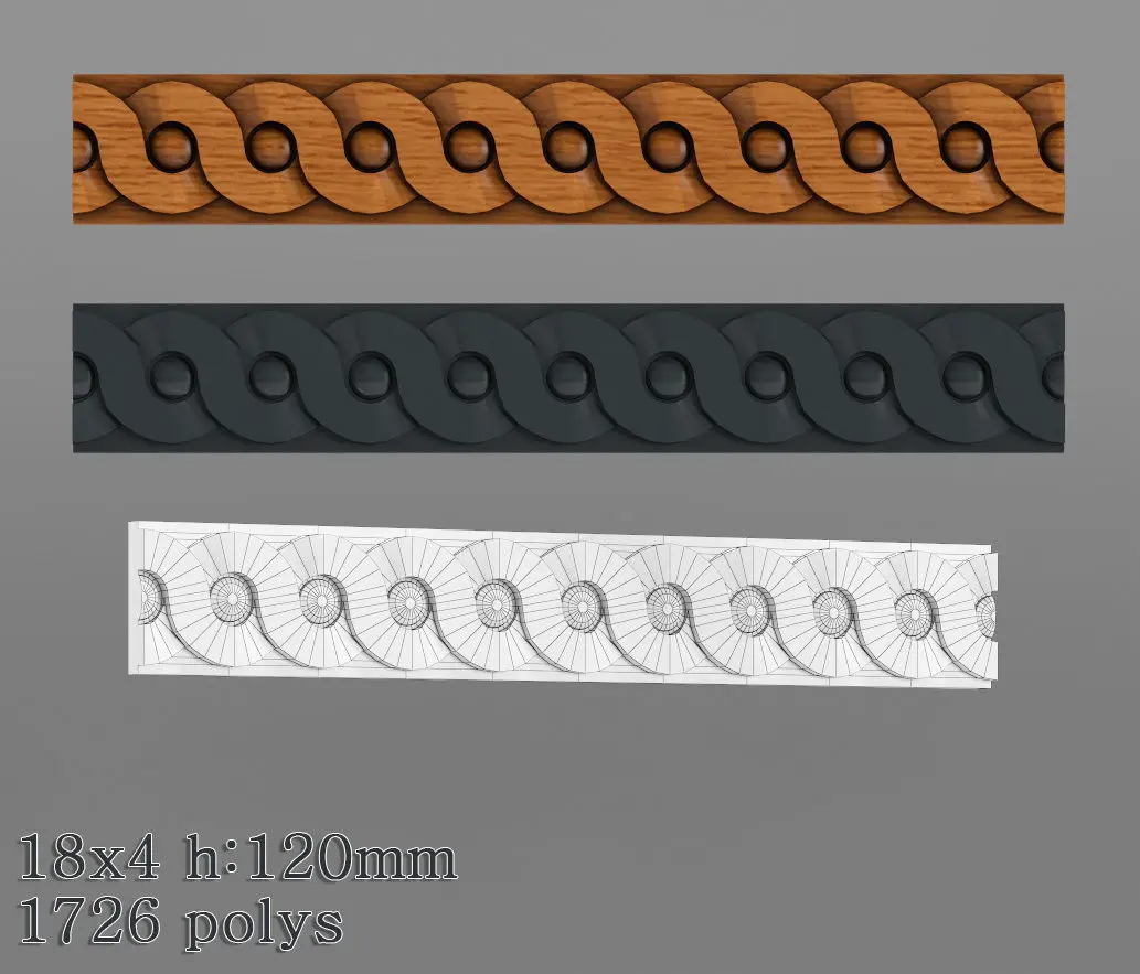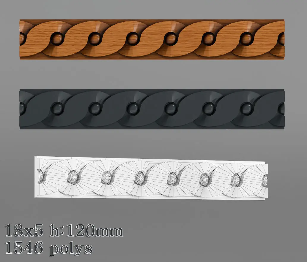 Set of mid poly decorative moldings. Modelled from fotos found on interent. Suitible for mid range renders.
