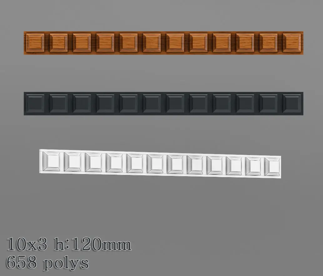 Set of mid poly decorative moldings. Modelled from fotos found on interent. Suitible for mid range renders.