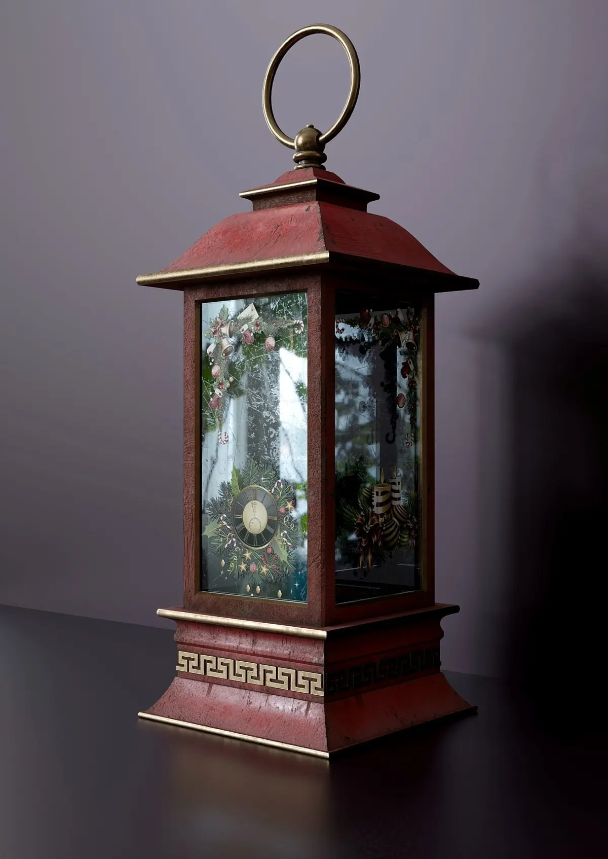 Old decorative New Year's lamp. The model consists of several objects: the main body, a hanging ring and a set of stickers on the glass (the material of the stickers is “native blender”) The lamp illumination is relevant in the “blender”. (you can choose the light source suitable for your software) Textures (res. 4096x4096) were baked in the Substance Painter program and packed in a zip archive. The archive also contains sticker textures (png on a transparent background)