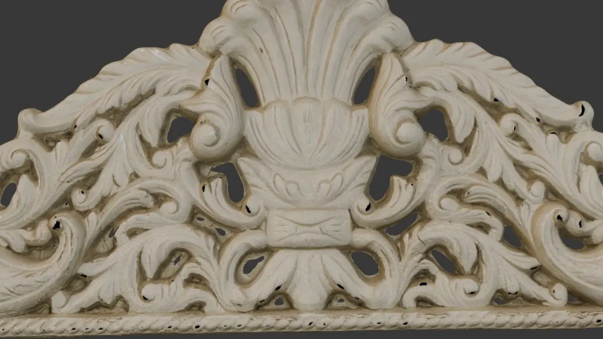 High-resolution 3D scan of an elegant ornamental arch featuring intricate floral and acanthus leaf carvings. This classical architectural element is perfect for interior design, historical restoration, and 3D visualization projects. The model includes 4K PBR textures for realistic rendering and is available in multiple formats (BLEND, FBX, OBJ, STL, GLB, USD).