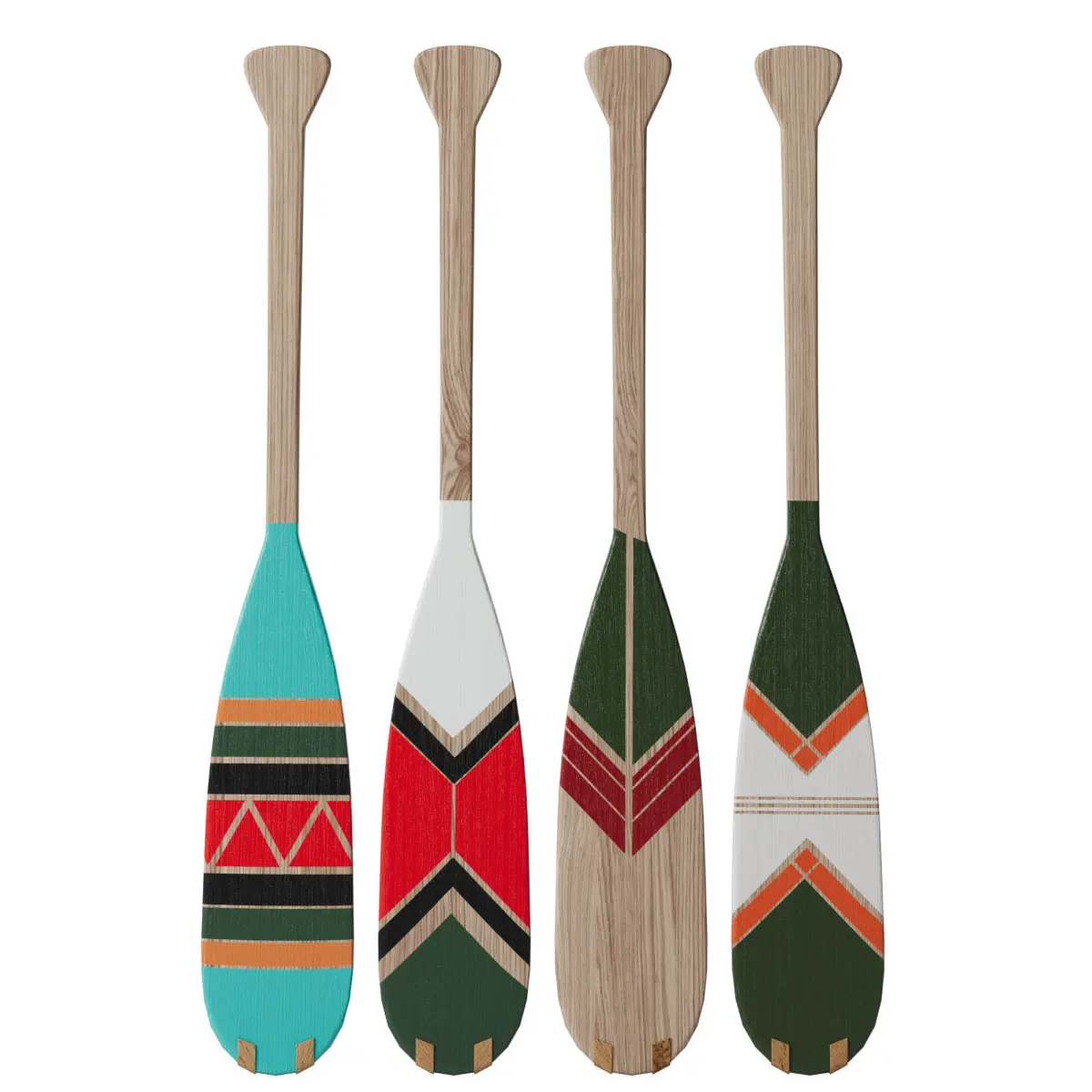 Set of decorative oars.Dimensions:Height - 100 centimeters. Width - 15 centimeters. Thickness - 2 centimeters.Please note that the paddle materials are baked. The kit includes three UV Sets with 4 materials each. The kit includes masks for each paddle separately.Units of measurement are centimeters.Render: Corona 11 .
