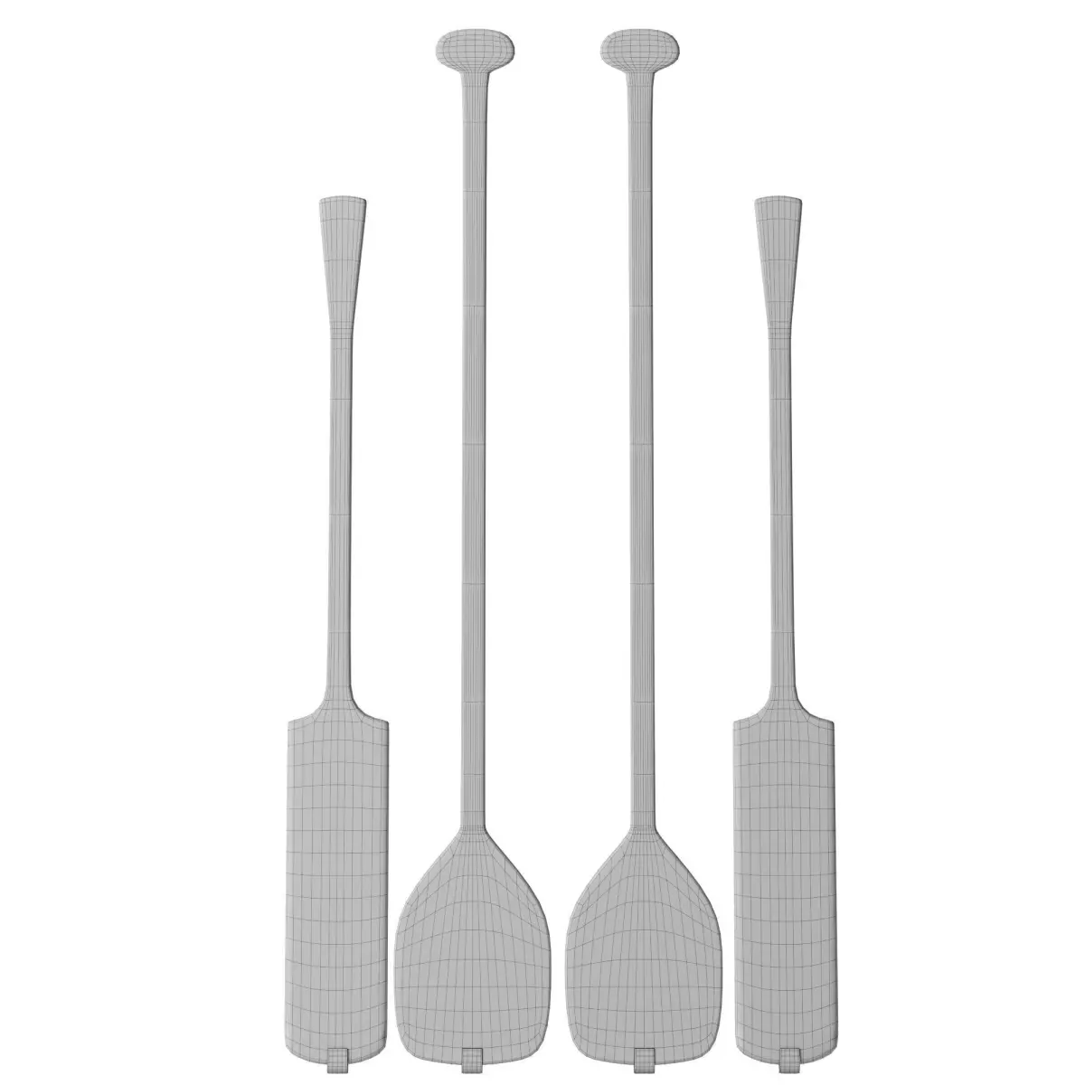 Set of decorative oars.Dimensions:Large paddle: Height - 150 centimeters. Width - 23 centimeters. Thickness - 2 centimeters.Small paddle: Height - 125 centimeters. Width - 15 centimeters. Thickness - 2 centimeters.Please note that the paddle materials are baked. All materials are in one UV set! The kit includes masks for each paddle separately.Units of measurement are centimeters.Render: Corona 11 .