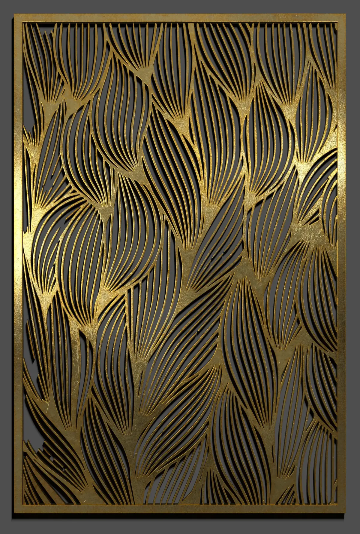 The set includes 5 panels. Each has the following dimensions: 118cm * 177 cm * 2cm. Gold material set for Corona renderer. DWG file is clean and ready for CNC, Corel draw, ... . Quad meshes and fully unwrapped.