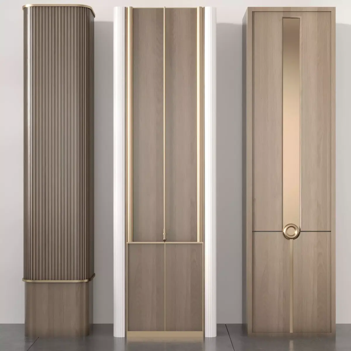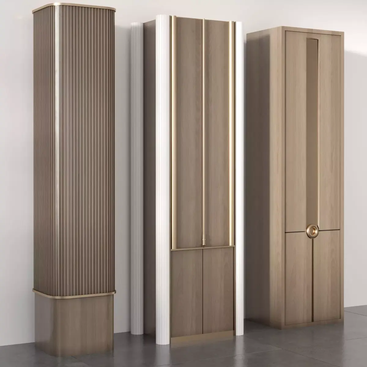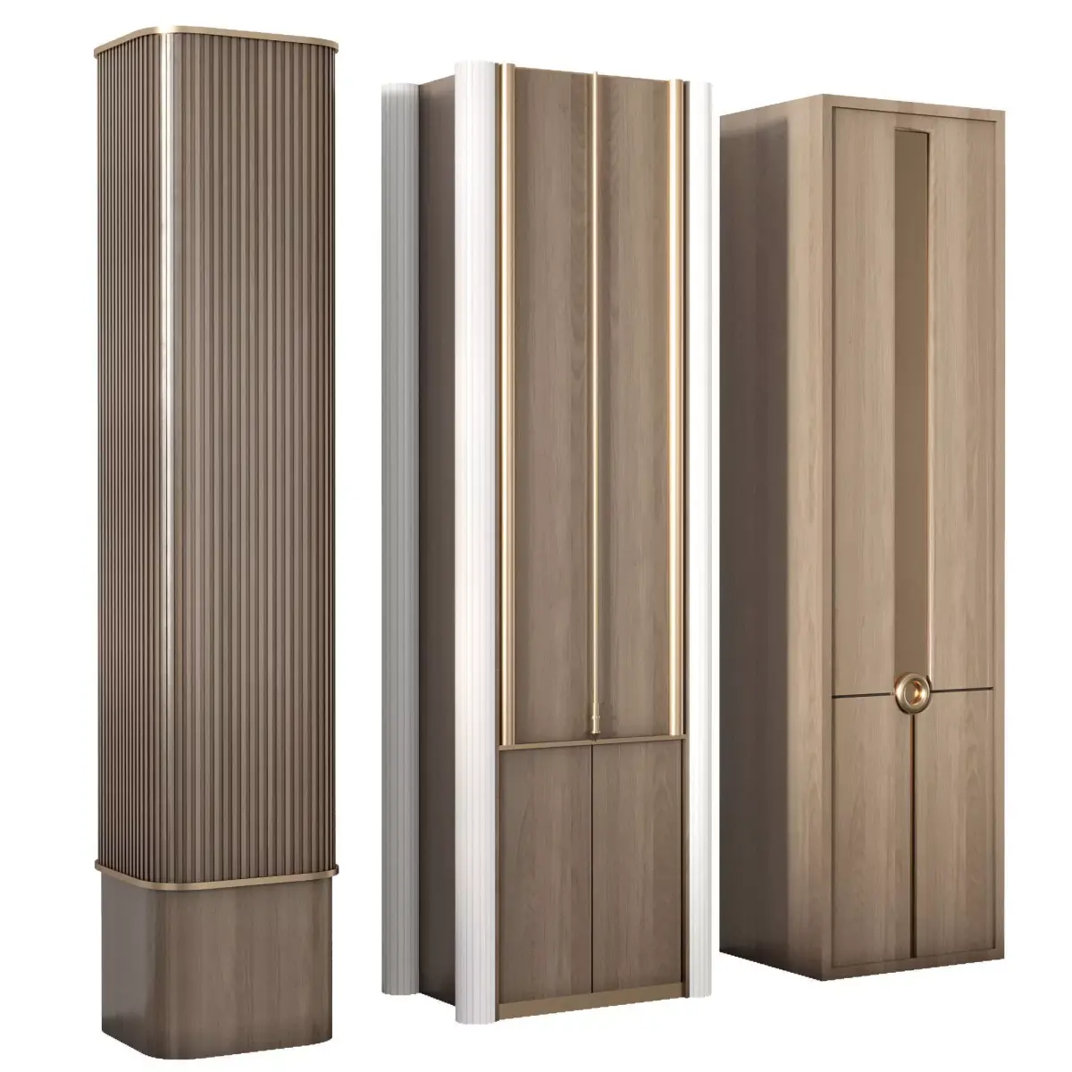 This 3D model presents a set of three unique decorative columns, each with its own design and detailing. Ideal for interior visualization, architectural projects, and luxury design concepts, these columns enhance spaces with elegance and style. The model is optimized for professional rendering and can be seamlessly integrated into both modern and classic environments. A perfect choice for designers seeking versatile decorative architectural elements.