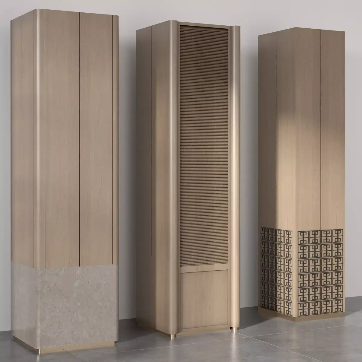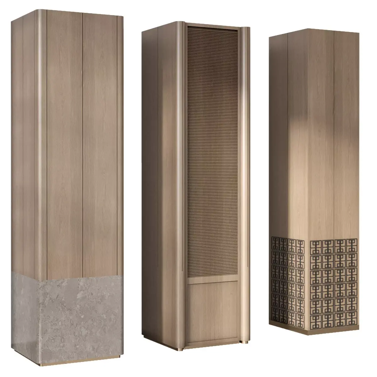 High-quality 3D model set of modern decorative columns with premium wood texture, stone base, and ornamental design elements, ideal for enhancing interior wall sections, lobby entrances, and luxury architectural spaces. Perfect for use in hotel lobbies, modern residential interiors, and commercial design projects, this decorative column set delivers clean topology and realistic shaders. Fully compatible with V-Ray and Corona render engines for professional visualization.