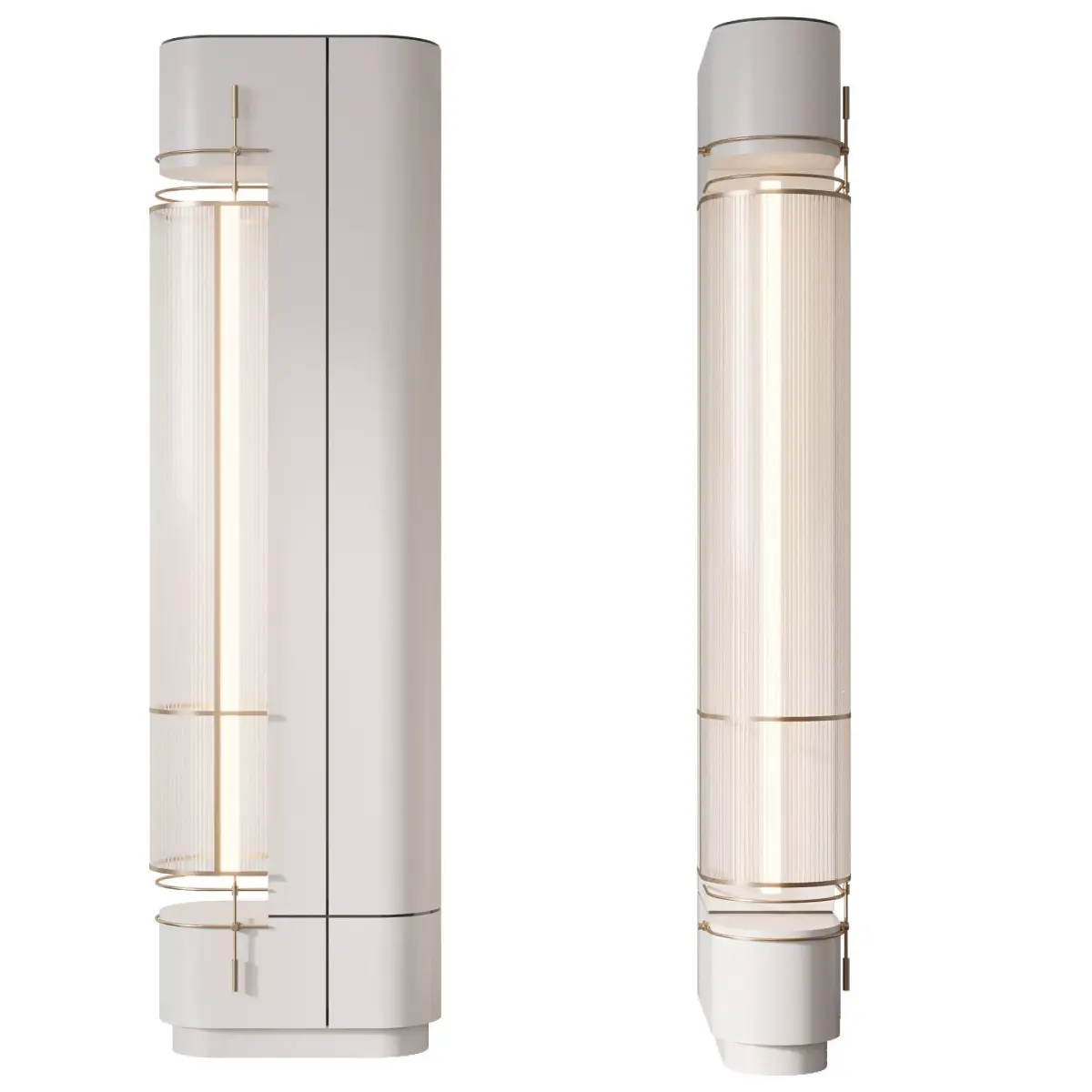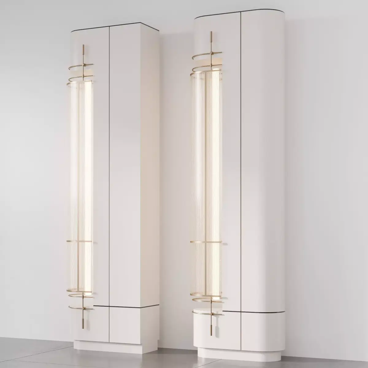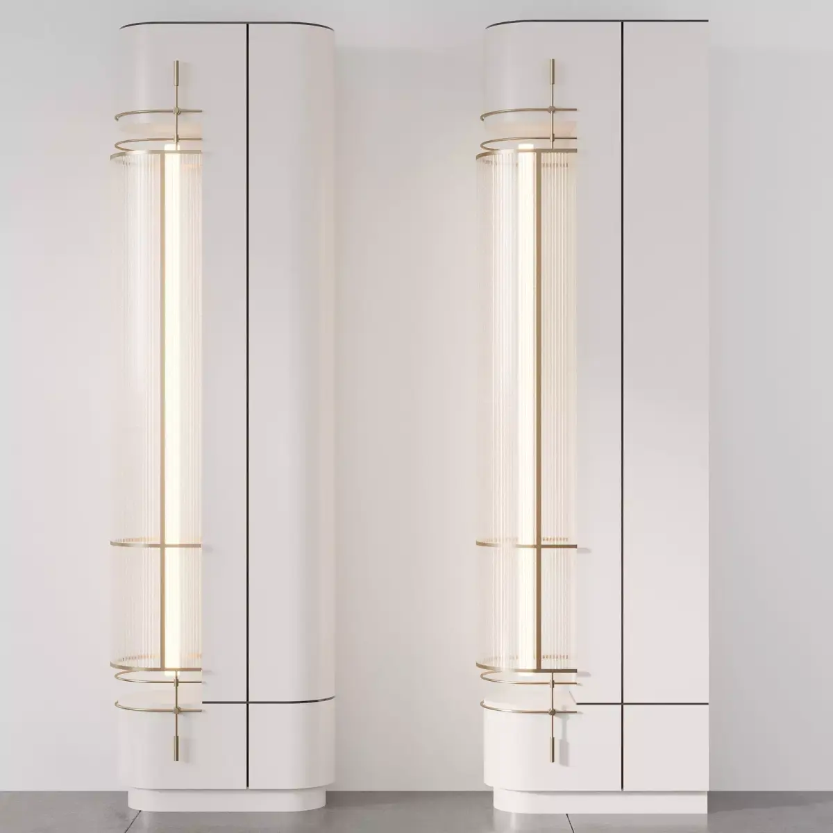 High-quality modern decorative column 3D models designed for luxury interiors.This set includes two elegant column variations with integrated LED lighting, metallic brass details, and smooth lacquered finishes, ideal for living rooms, hotel lobbies, or modern hallways.