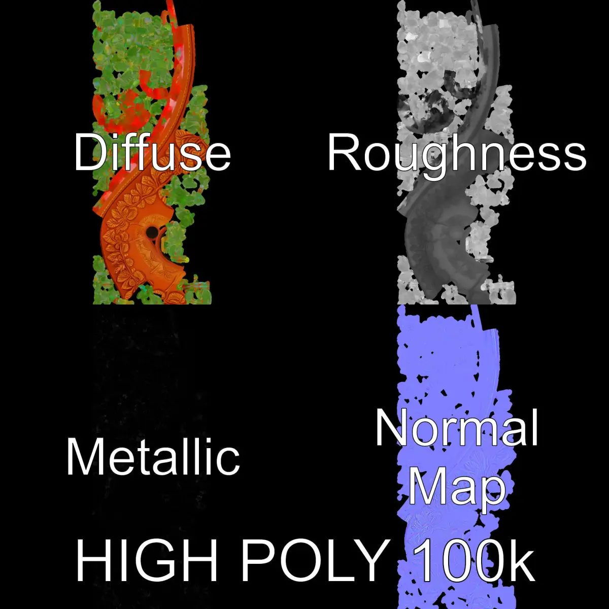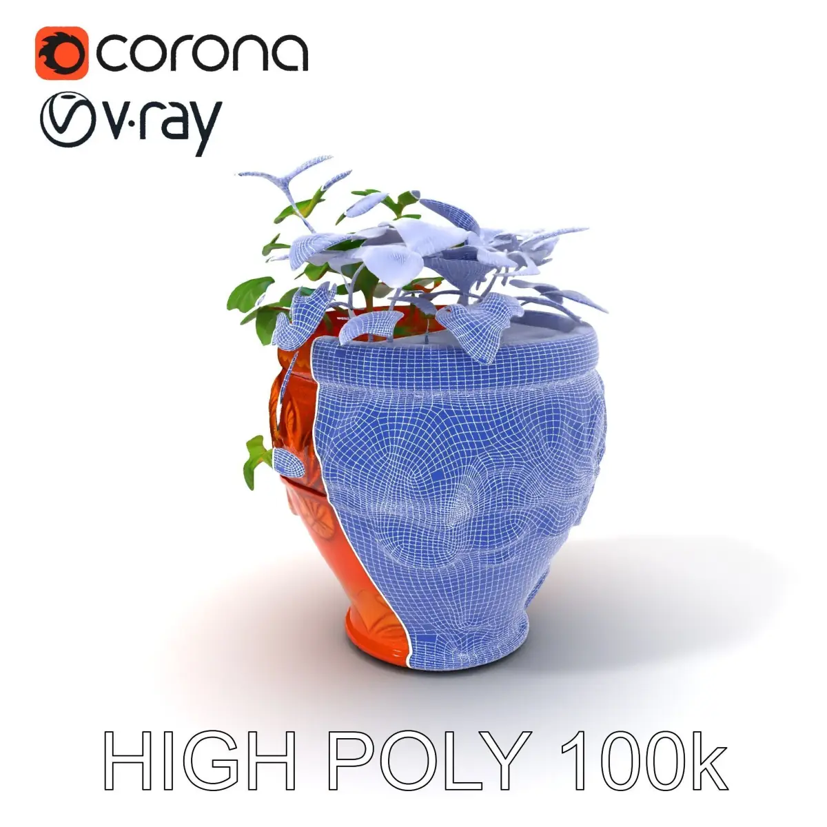This 3D model pack features a decorative plant pot intricately designed with embossed leaf patterns. The model is highly versatile, with three levels of detail suitable for a range of applications, including architectural visualizations, interior design projects, product presentations, and gaming environments. High-quality PBR textures ensure realistic renderings, while the different poly counts (1000, 10,000, 100,000 triangles) allow easy adaptability to various rendering engines like 3ds Max, Maya, and game engines like Unity and Unreal. All textures are 4096*4096 in size, ensuring detailed and clear imagery. Models are accurately unwrapped with no overlapping UVs.