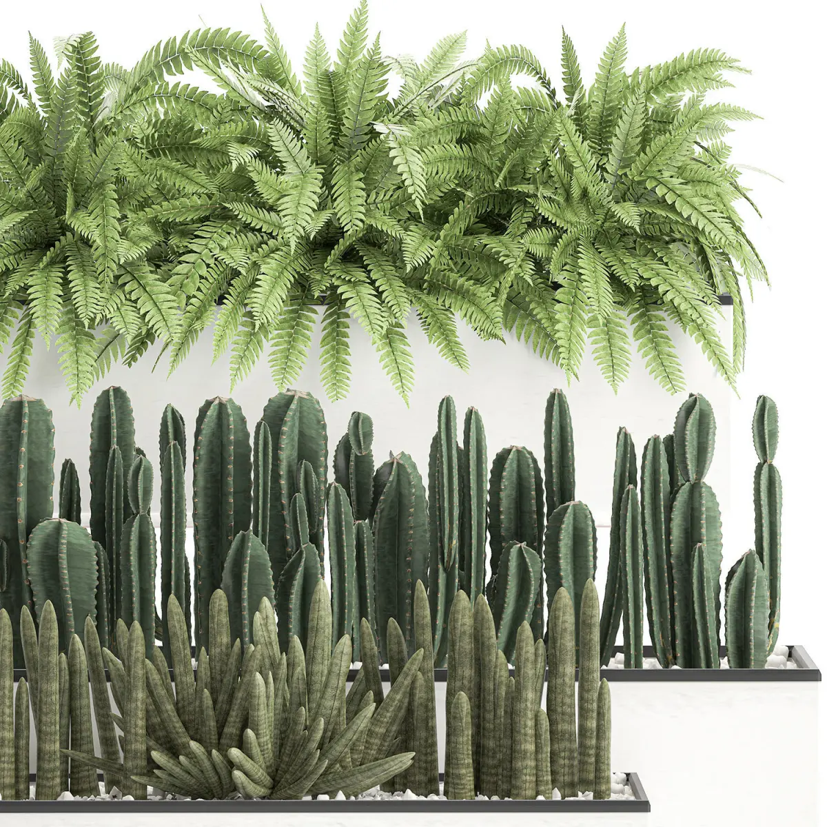 Decorative plants for the interior in a white flowerpot.Houseplantsexotic plantsTropical plantssansevieriaSansevieria cylindricaCactusCereusnephrolepis, fern