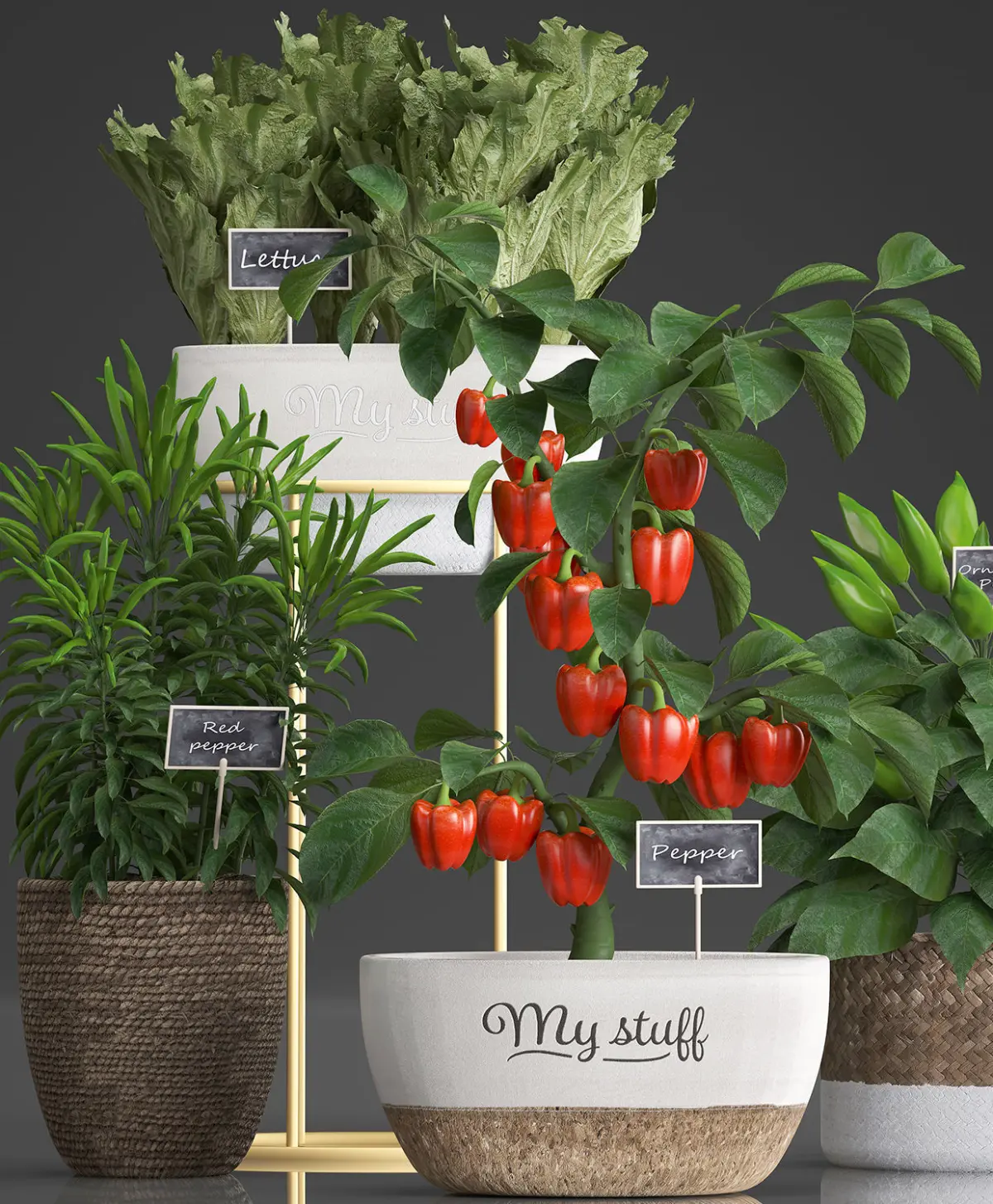 decorative plants for the kitchenHouseplantsexotic plantsCollection of ornamental plantsbushesgreensvegetablesRed pepperpeppersdecorative pepperpepperLettuce - Lactuca sativa