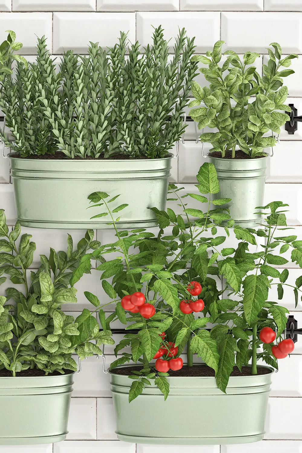 decorative plants for the kitchen on railingrailing kitchenrailing with plantsHouseplantsexotic plantsCollection of ornamental plantsRosemary - RosmarinusTomatoBasil ocimum basilicumgreentilekitchen apron