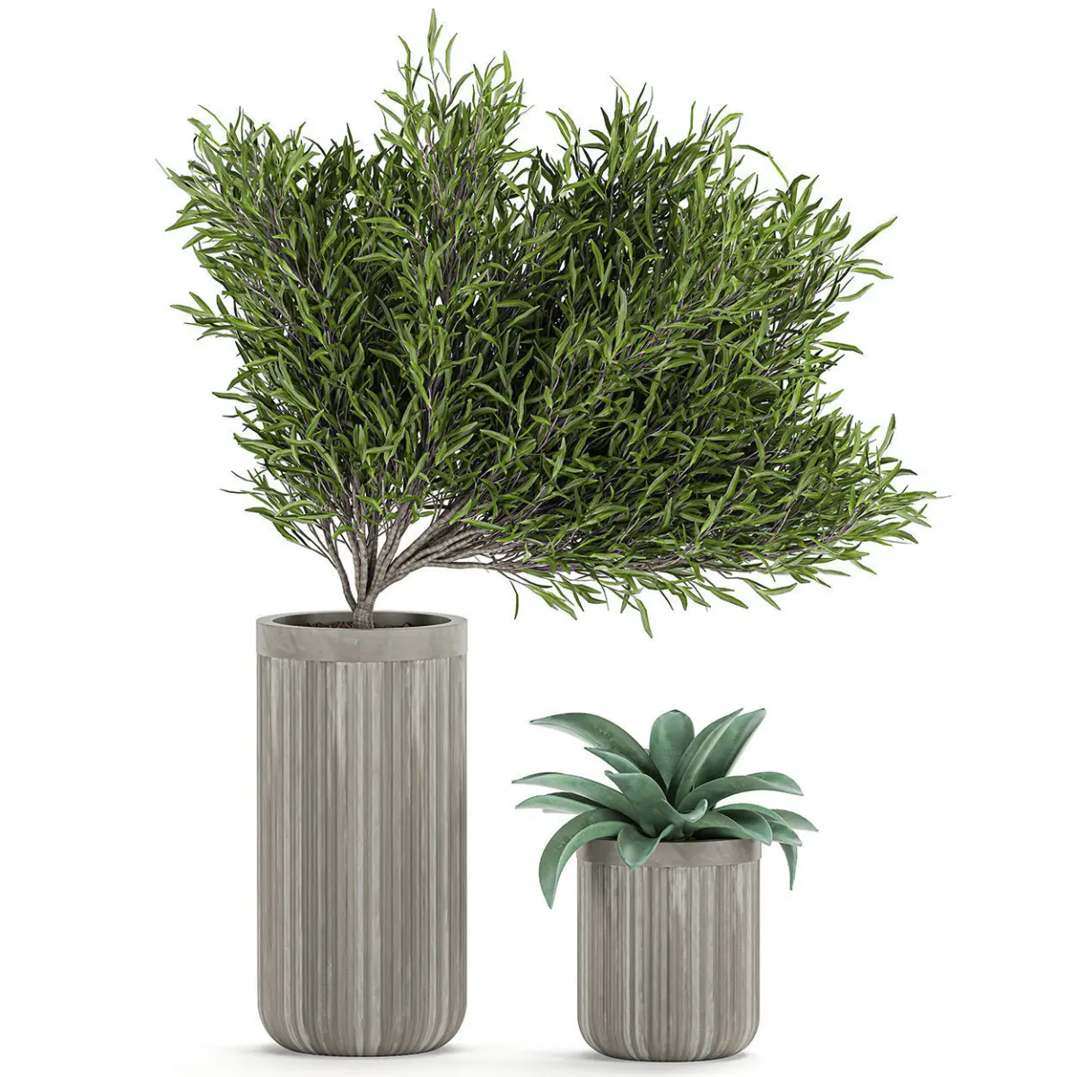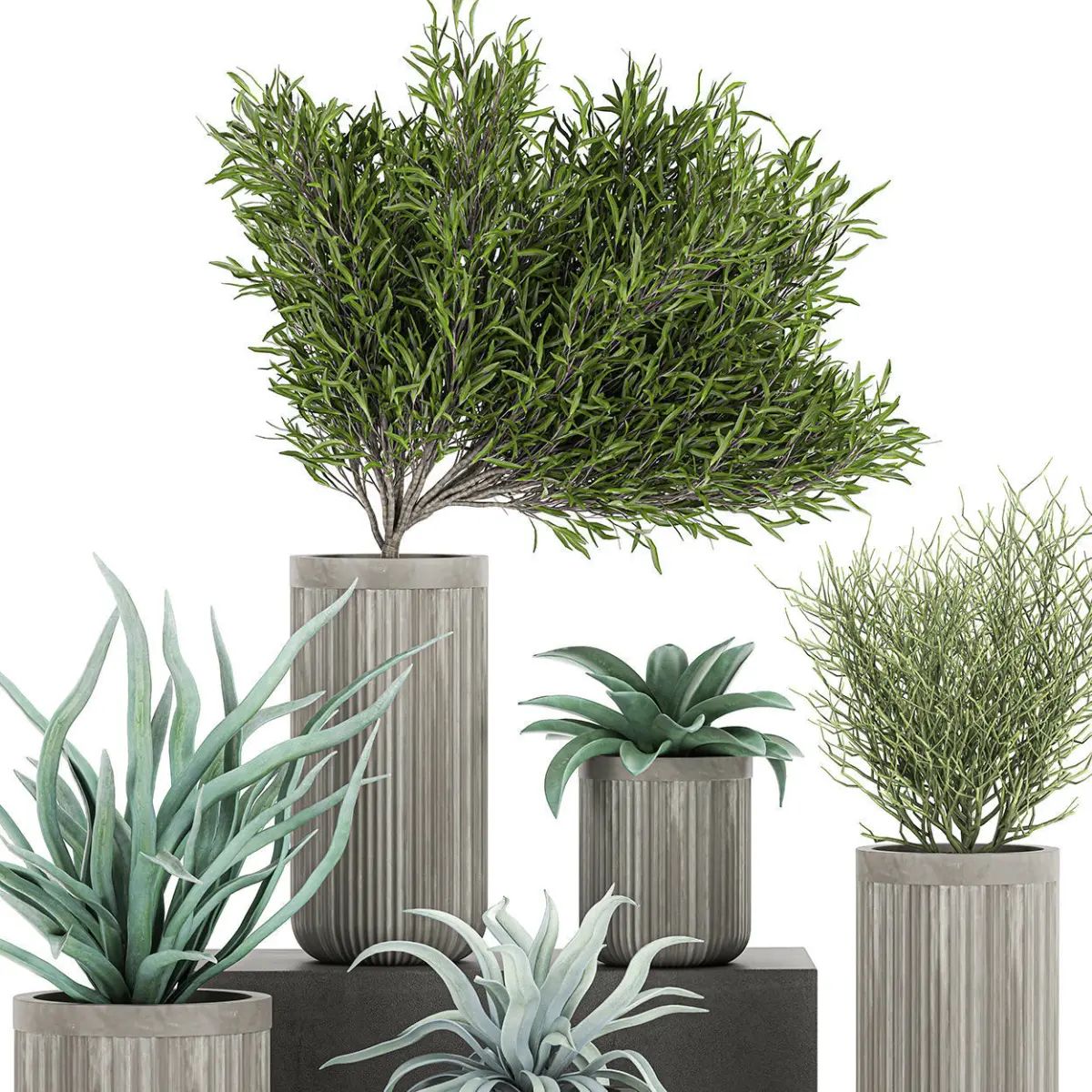 Decorative plants in a concrete flowerpots 802 3D model