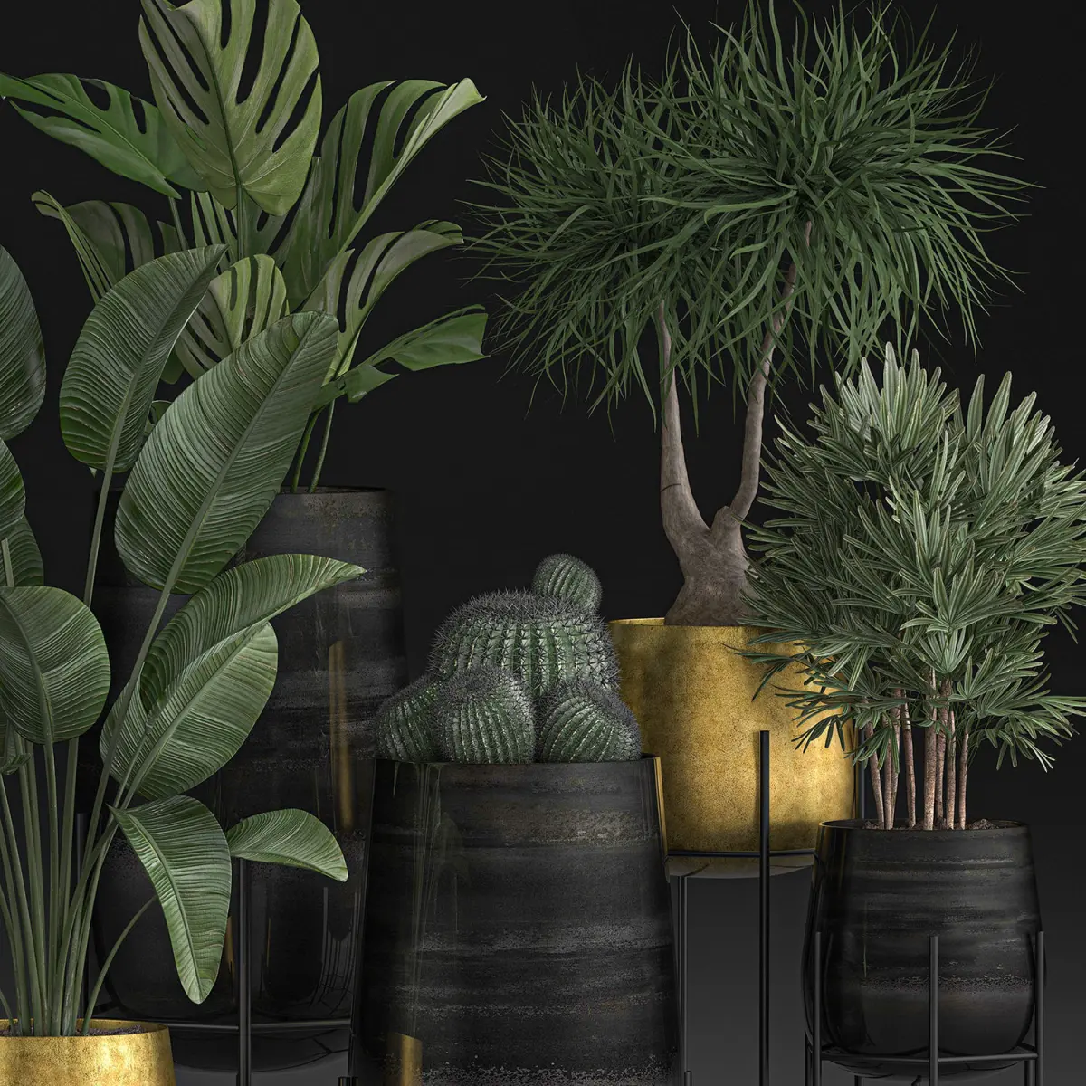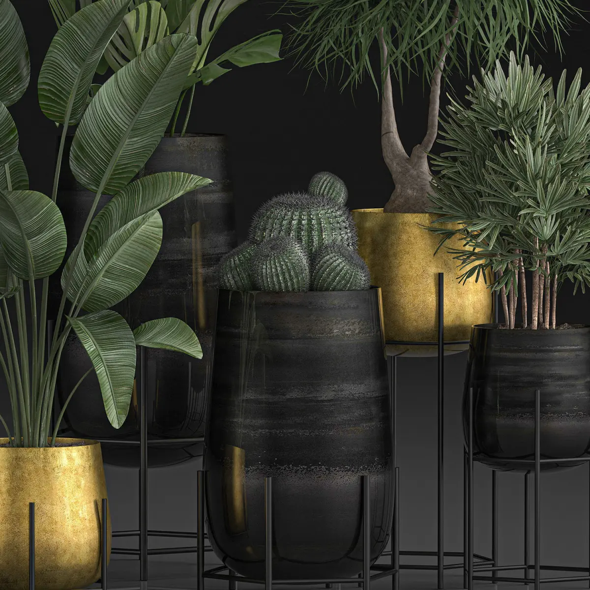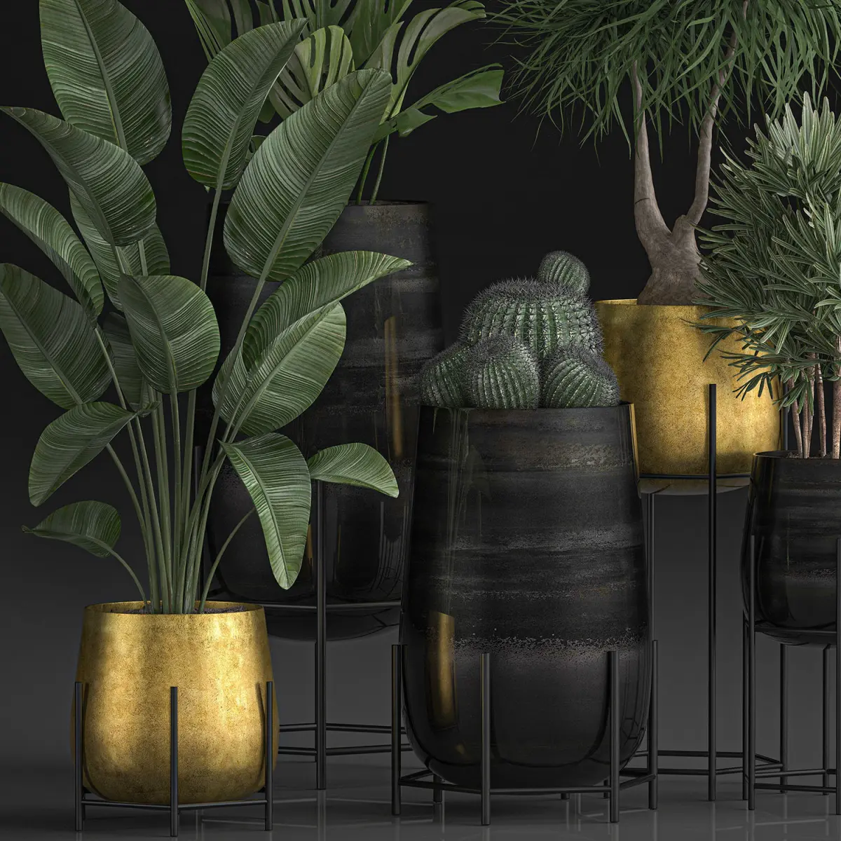HomeCatalogDecorative plants in Luxury Gold Pots for the interior 545 3D model