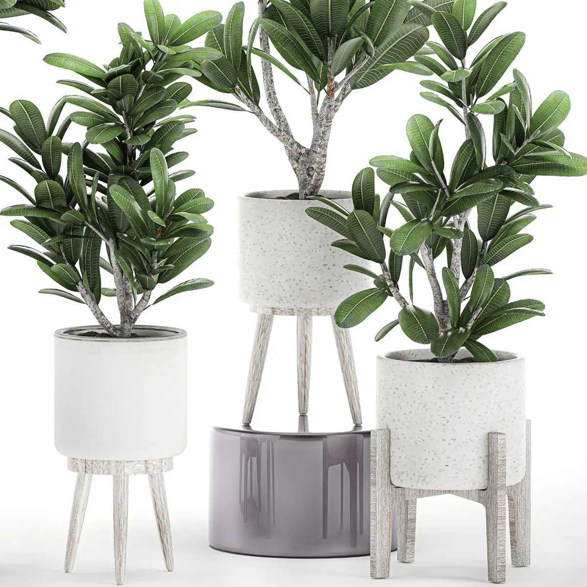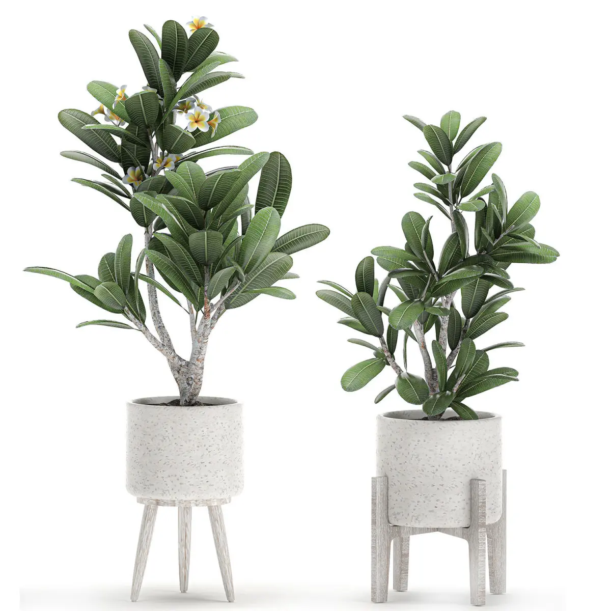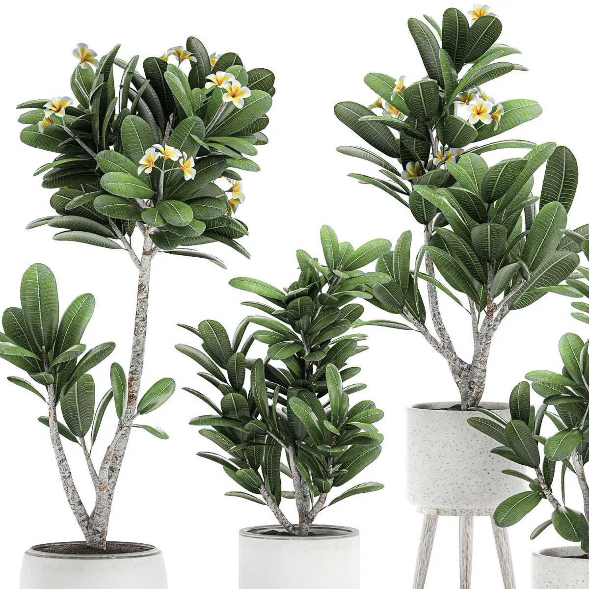 Decorative plumeria trees for the interior in white pots 558 3D model