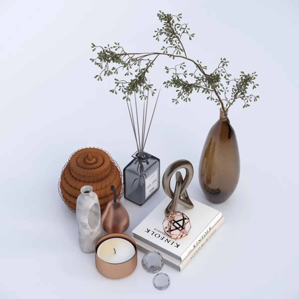 vase, decor, decoration, set, book, candle, frame, picture, glass, brass, fashion, sculpture, livig, shelf, cozy