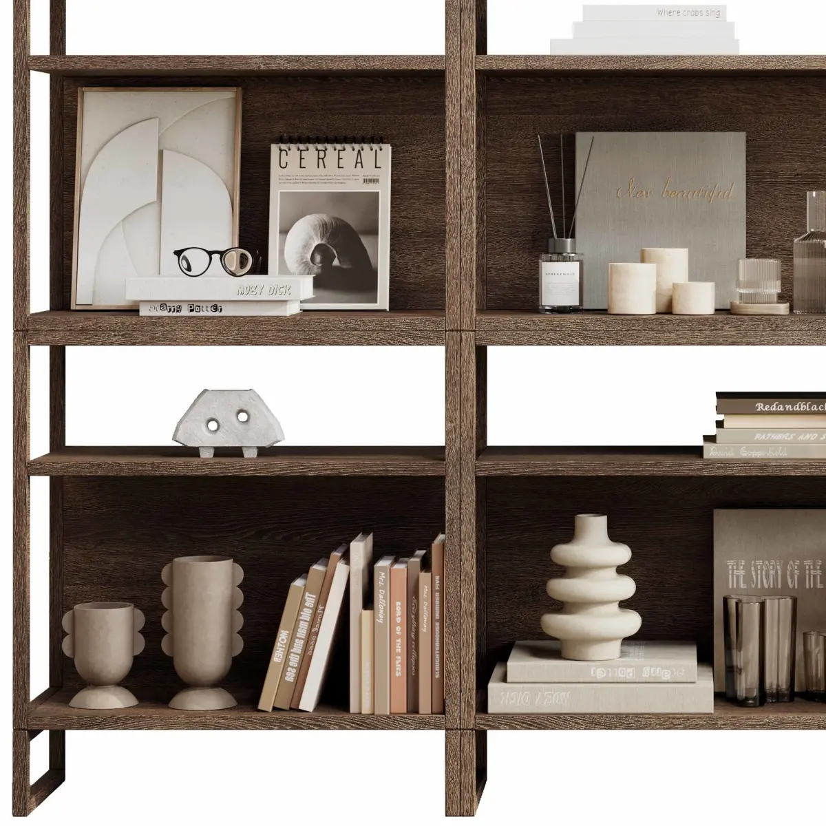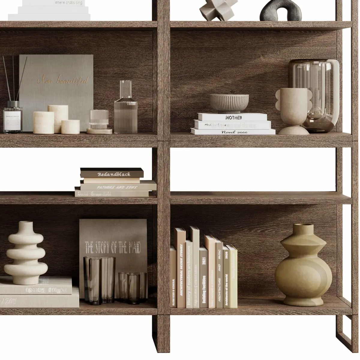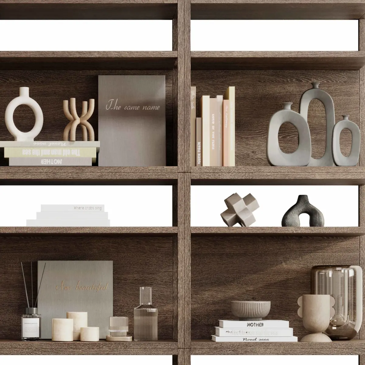 Decorative Set 004 - Wooden Shelves Decorative With Book Rack