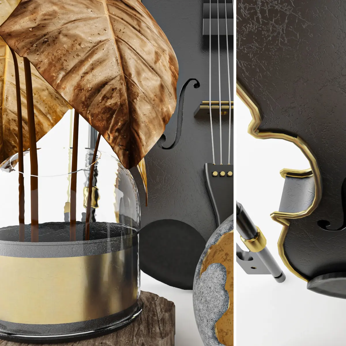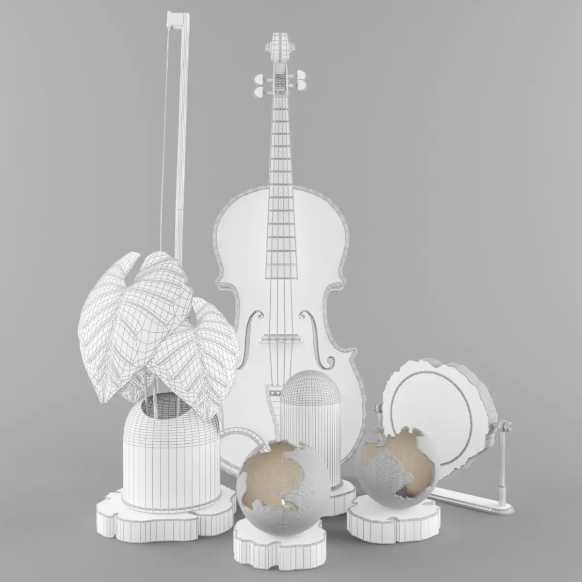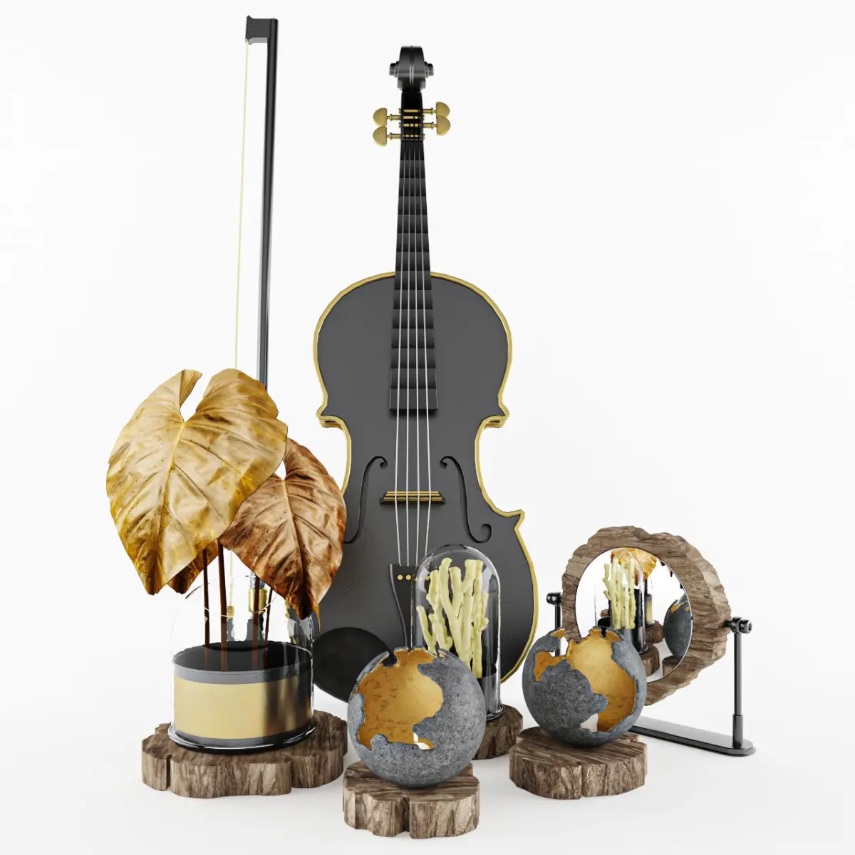 FILE CONTENT-Black violin-Fiddlestick-Dried leaf and coal set-Candles-Mirror