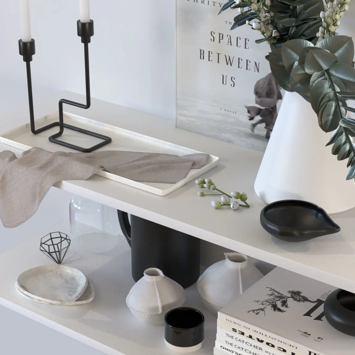 Name: Decorative Set-02Type: modelFormat: 3Ds Max 2013Export: OBJRender: Corona (6)Polys: 278622Verts: 295835Units: CentimetersDimension: 82.97 x 32.13 x 74.38Date: 2023.3.7