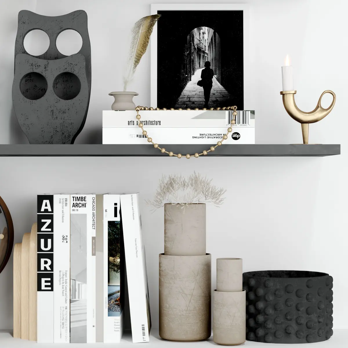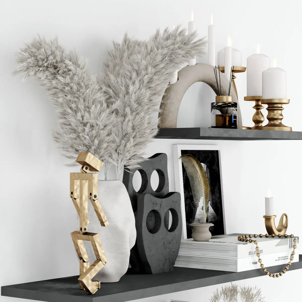 A set of decor for an interior with Light, beige shades and natural decor materials are suitable for any modern interior and eco-style interior.All elements have unique names in English. All textures also have unique names in English. The paths to the textures are cleaned. In the scene, only the model itself with textures, without garbage geometry, cameras and light.file:fbx-3dmax2015rendering:vray