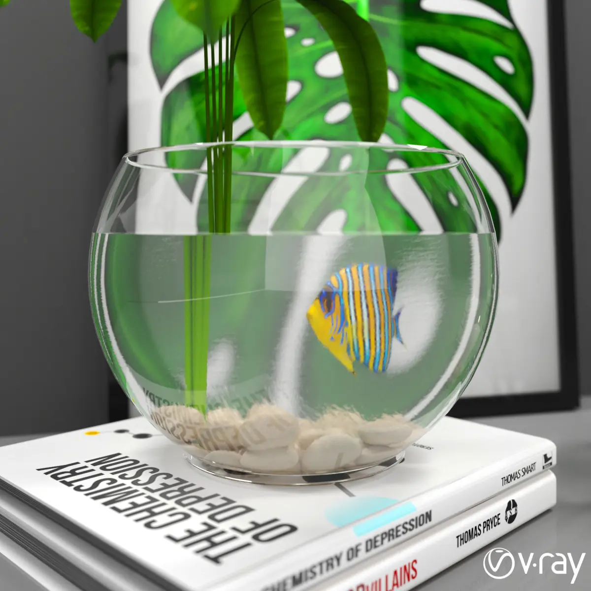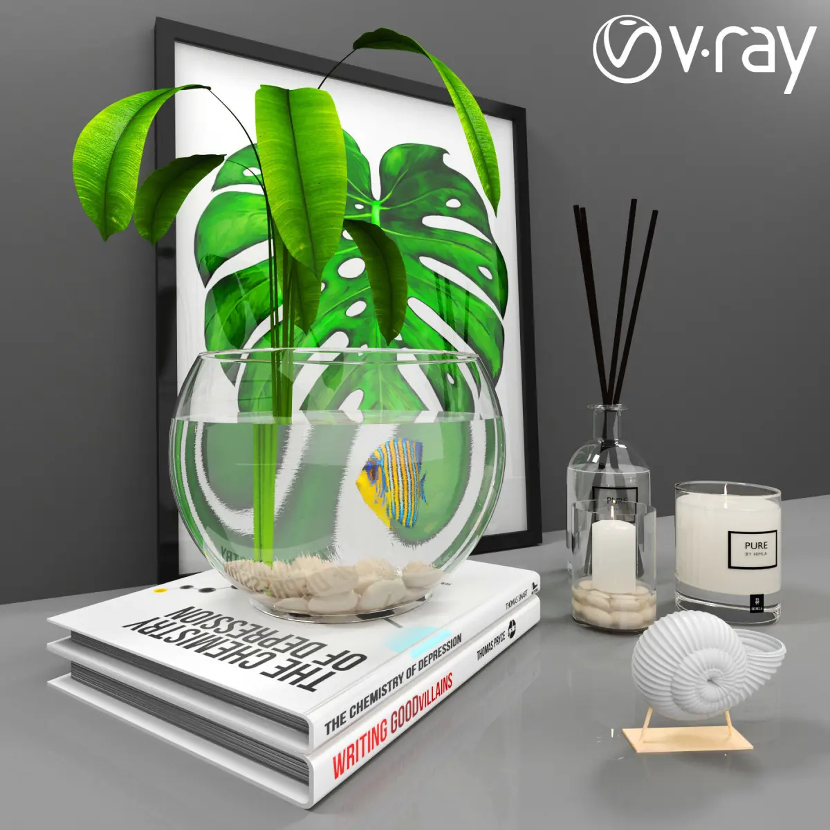 decorative set with fishbowl.Render: vray 3.5.Formats: 3Ds max2016 + OBJ + FBX.Lighting setup is not included in the file !.No additional plugins are required to open the model.polygon: 562,637