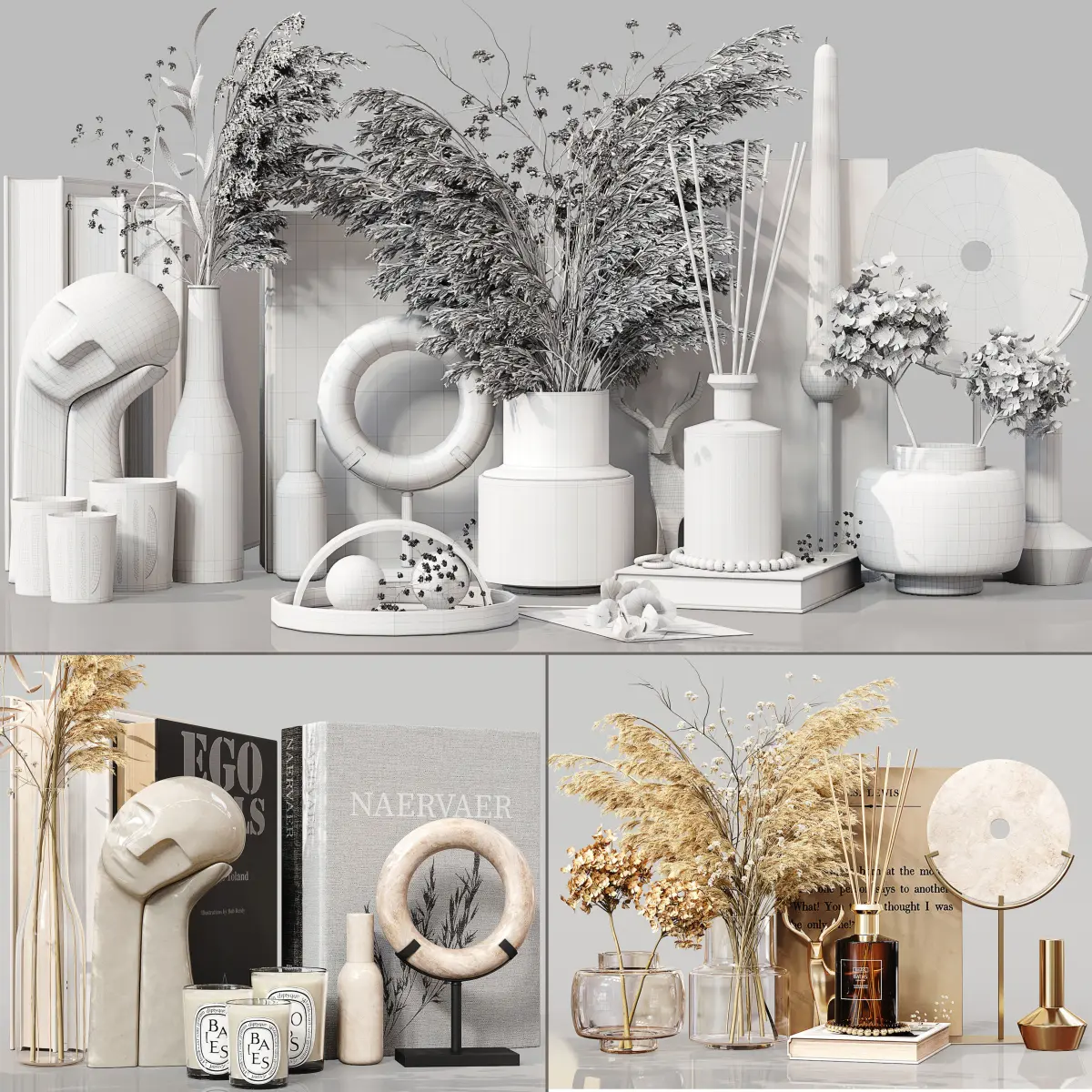 Decorative Set 090———————————————High quality model Detailed enough for close up renders———————————————In the archive: 3Dmax 2014 (Vray + Corona) + OBJPolys: 2.321.357Verts: 2.528.930System units: mmThe models have a TurboSmooth modifier———————————————Have a nice render