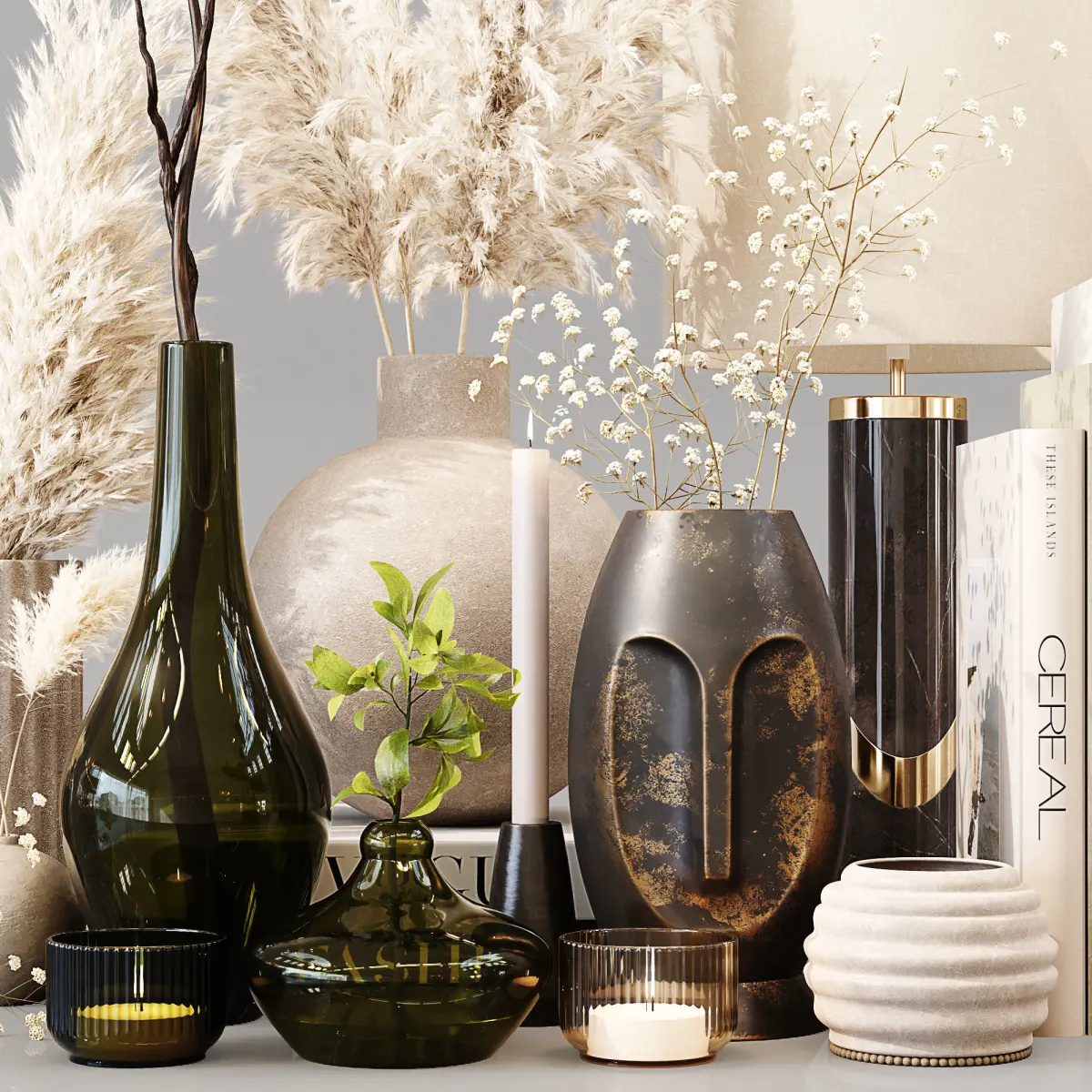 Decorative Set 098———————————————High quality model Detailed enough for close up renders———————————————In the archive: 3Dmax 2014 (Vray + Corona) + OBJPolys: 1.662.043Verts: 2.176.211System units: mmThe models have a TurboSmooth modifier———————————————Have a nice render