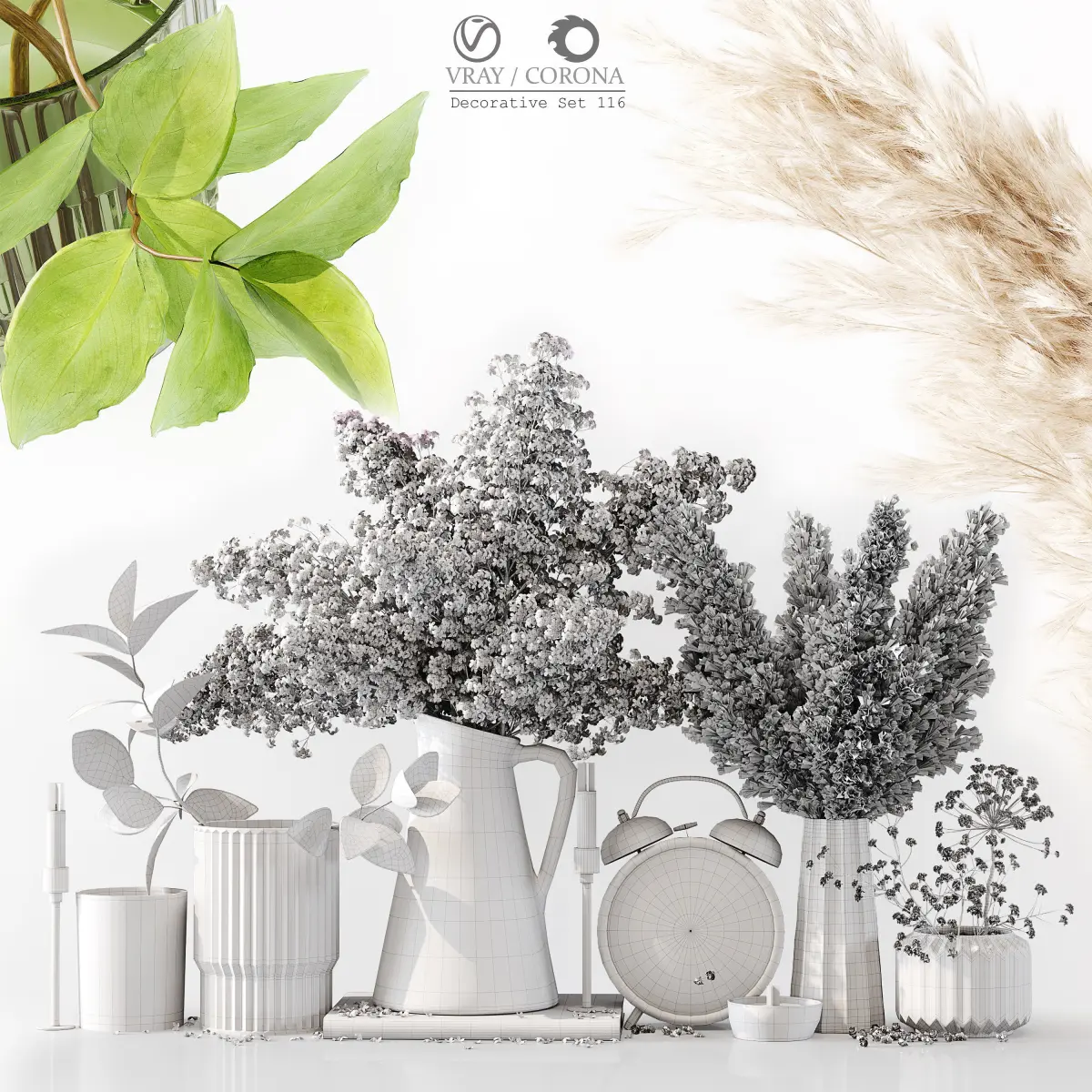 Decorative Set 116———————————————High quality model Detailed enough for close up renders———————————————In the archive: 3Dmax 2015 (Vray + Corona) + OBJPolys: 1.828.003Verts: 2.639.151System units: mmThe models have a TurboSmooth modifier———————————————Have a nice render