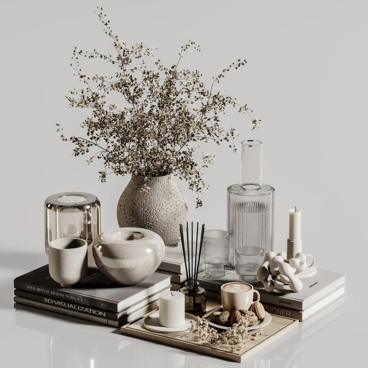 decorative_set_129(by.shayan.sharify)Version:3Ds Max 2015Dimension: 52.56 x 44.95 x 47.26Polys: 595030Formats:vray+corona+obj
