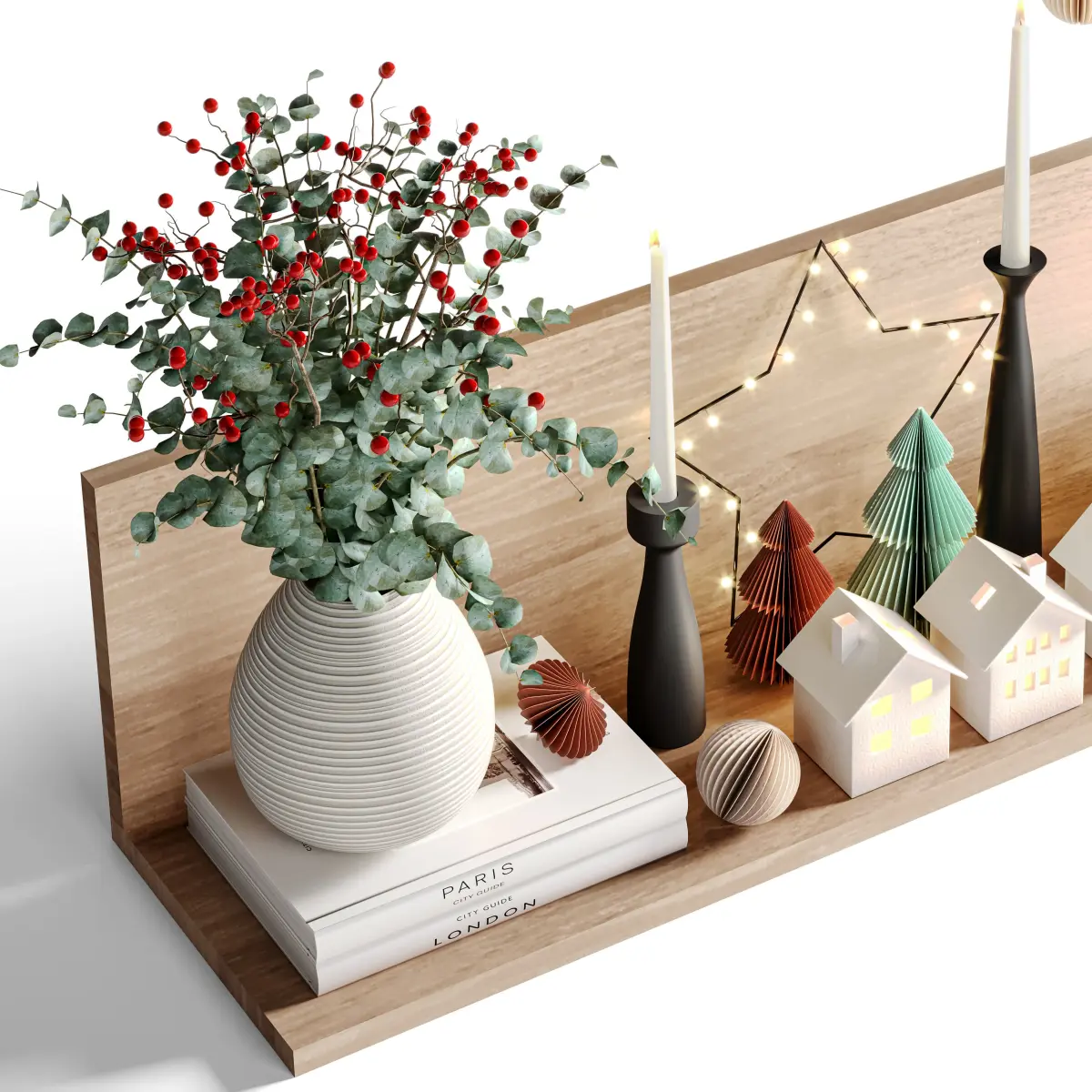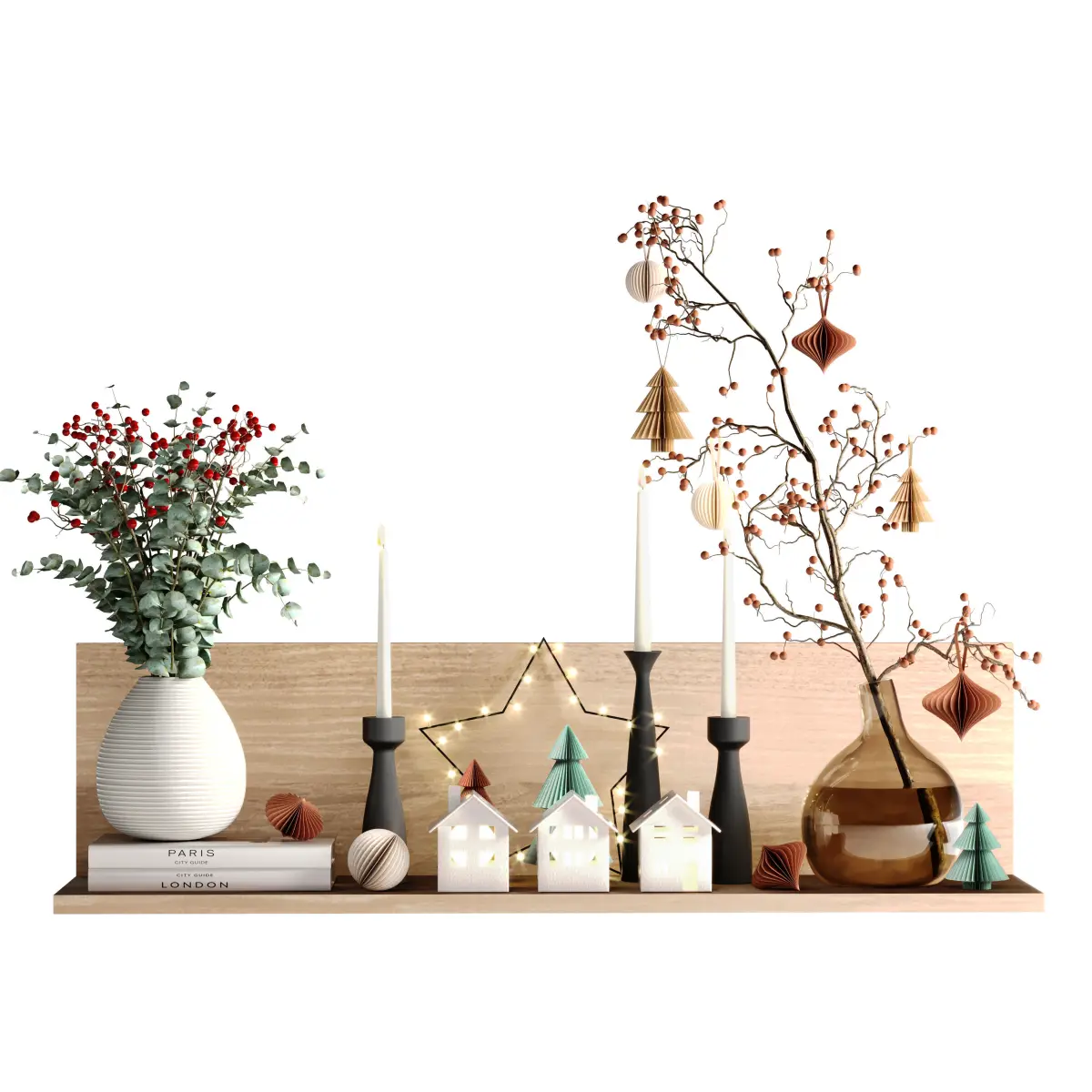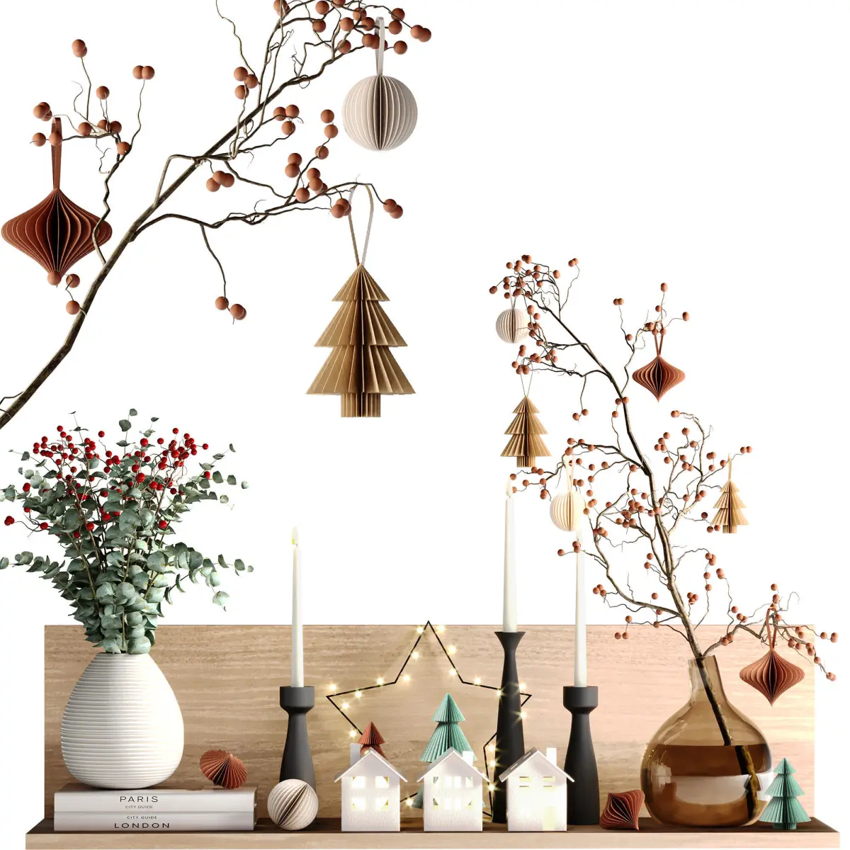 Decorative Set 14 include Christmas Decorative Items, Books, Vase with Eucalyptus Plant, Candle Holders and other Decorative Elements Used in Minimal, Modern, Wabisabi, Japandi and Moden Organic Styles ...