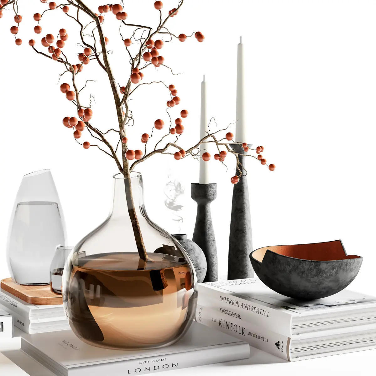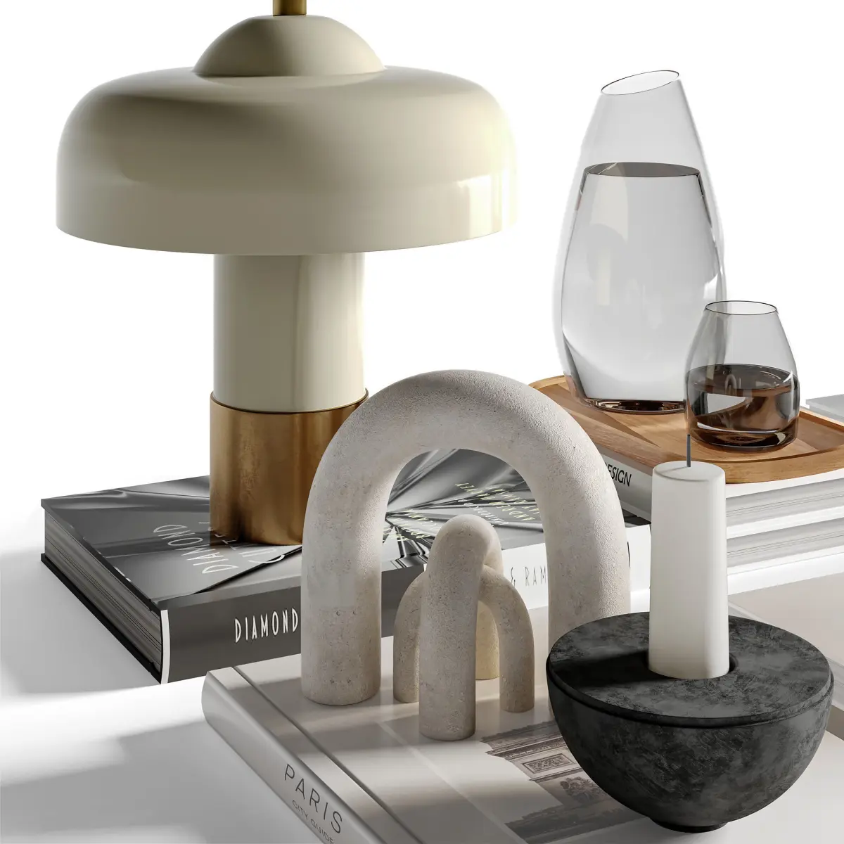 Decorative Set 15 include Gioanni Table lamp, Book, Vase with Branch , Candle, Candle Holdern and other Decorative Elements Used in Minimal, Modern, Wabisabi, Japandi and Moden Organic Styles ...