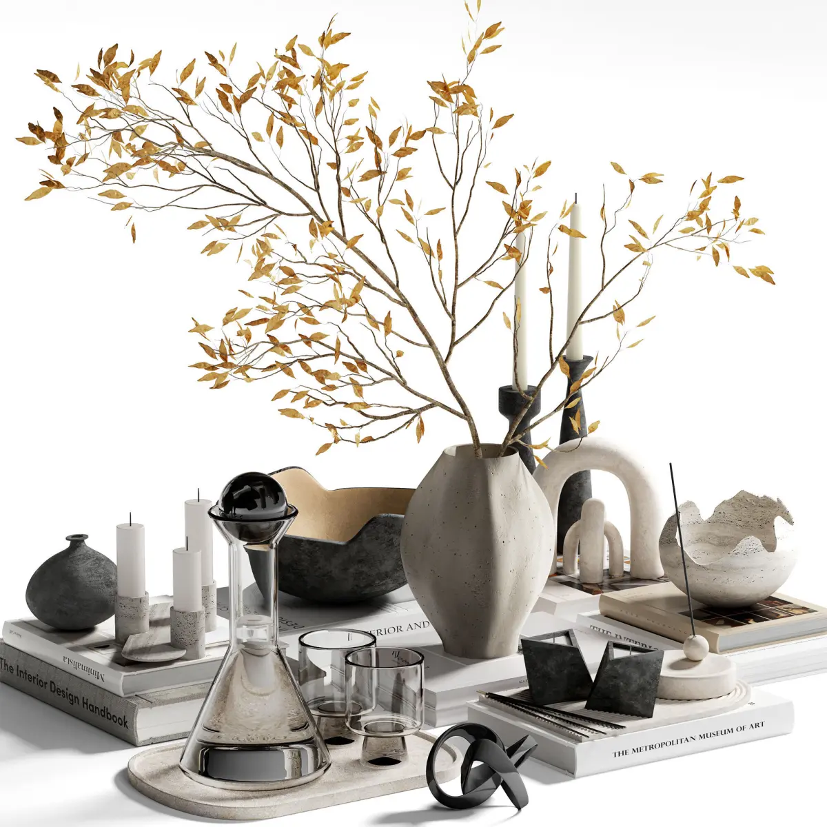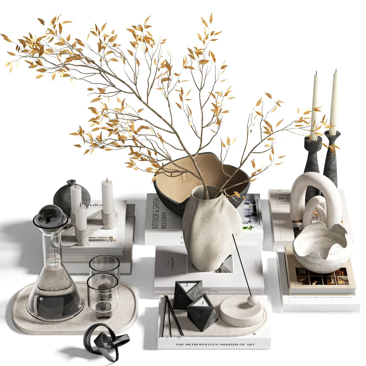 Decorative Set 17 include Books, Vase with Plant , Candle, Candle Holder ,Jug and glass, Bowl and other Decorative Elements Used in Minimal, Modern, Wabisabi, Japandi and Moden Organic Styles ...