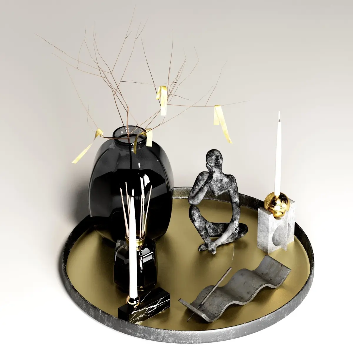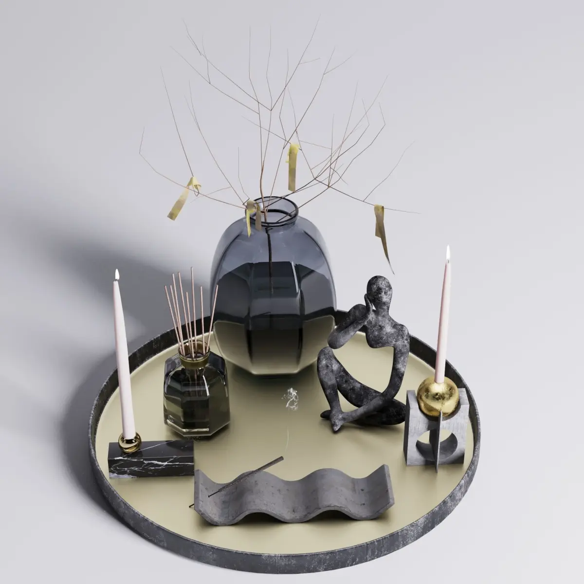 Applied decorative set for interior design of different spacesinclude:-Vase-Candle-Sculpture-tray-and ...