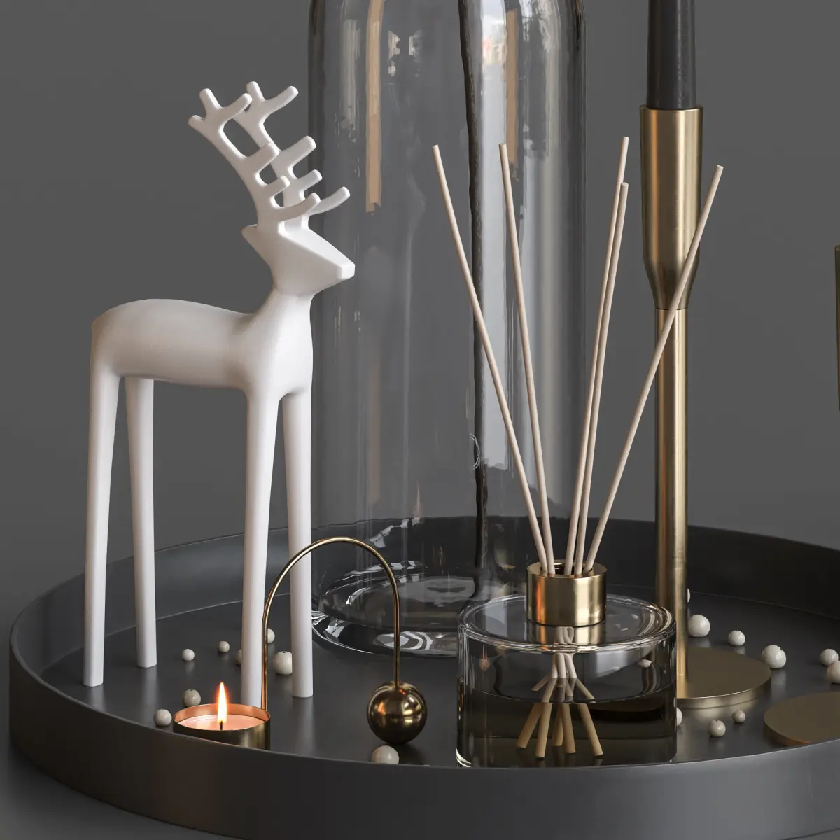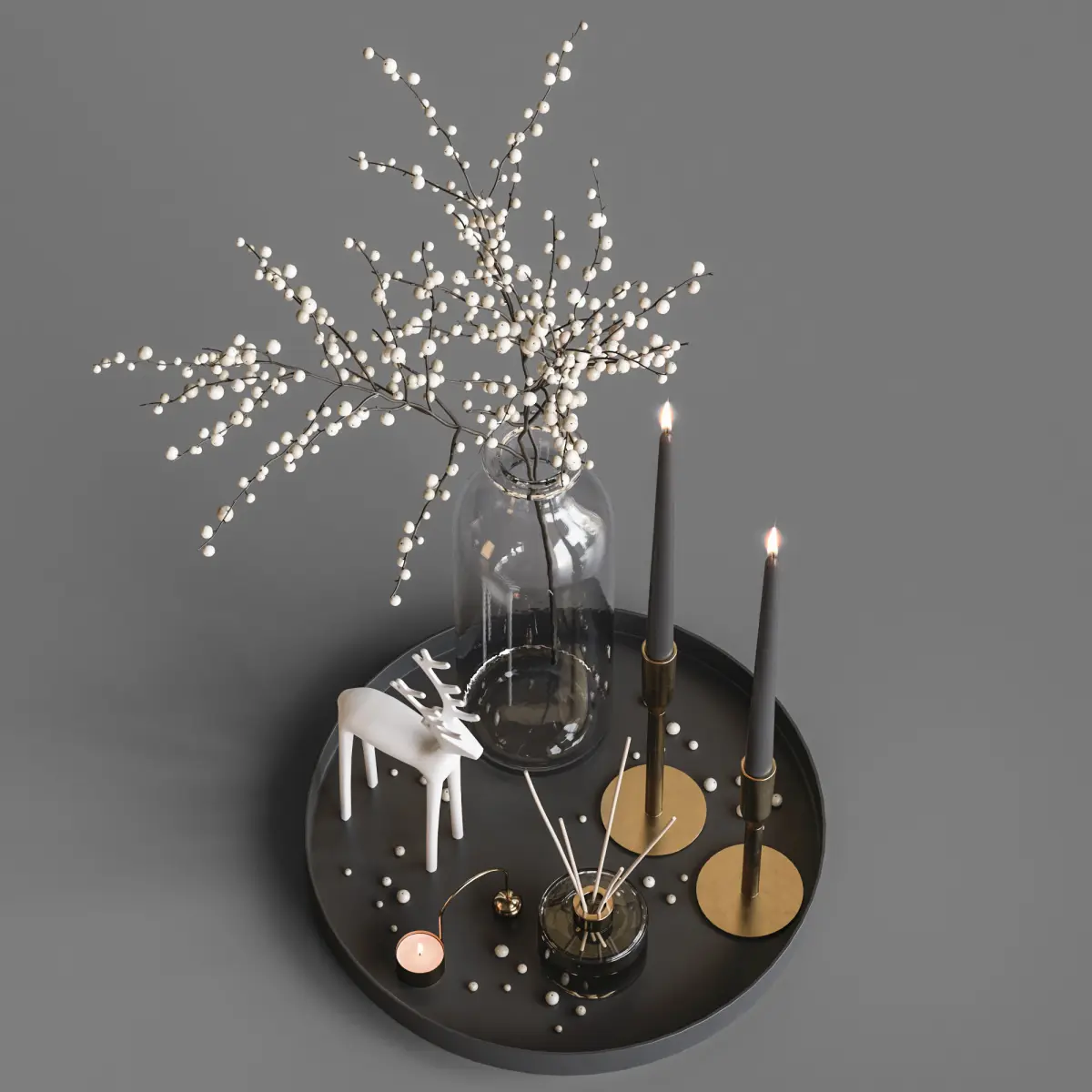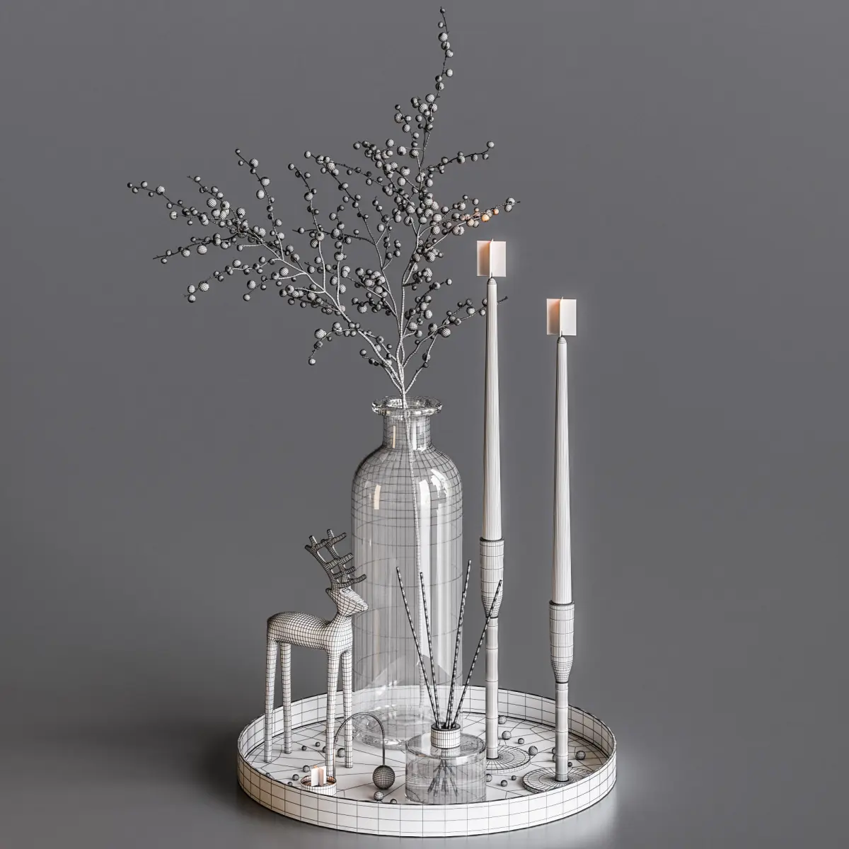 Decorative set with a branch of white berries.