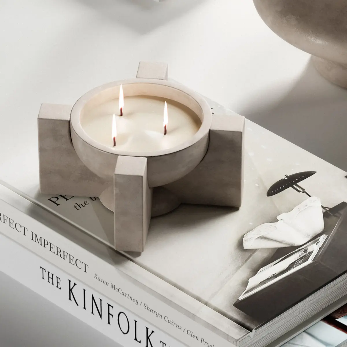 Decorative Set 36 include Concrete Vase with Flowers, Books, Jug and glass and Other Decorative Items Used in Minimal, Modern, Wabisabi, Japandi and Modern Organic Styles ...