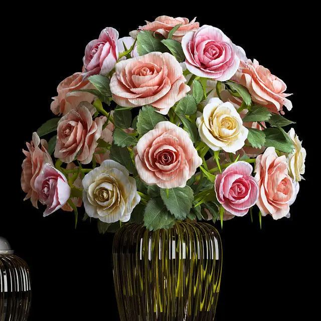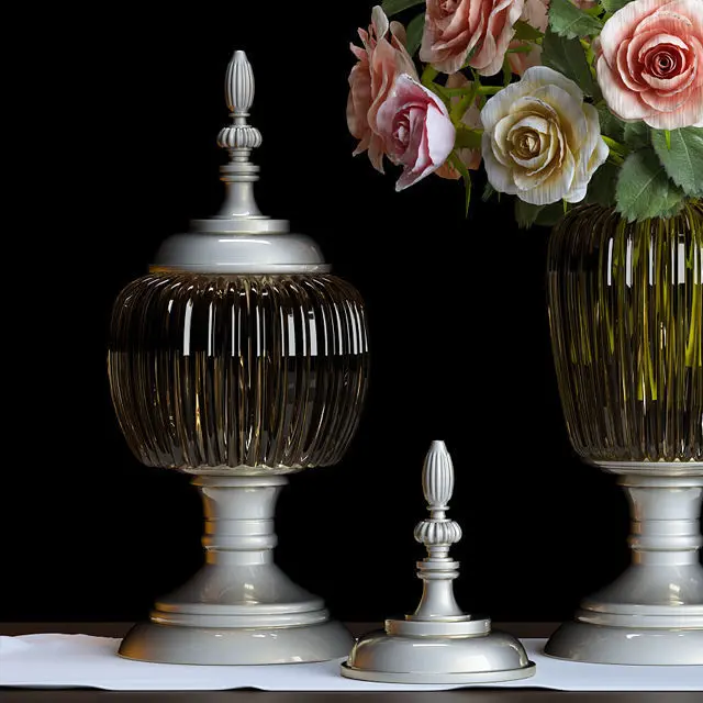 Decorative Set 41 is a tableware set of metal,glass vase and rose flower bouquet.