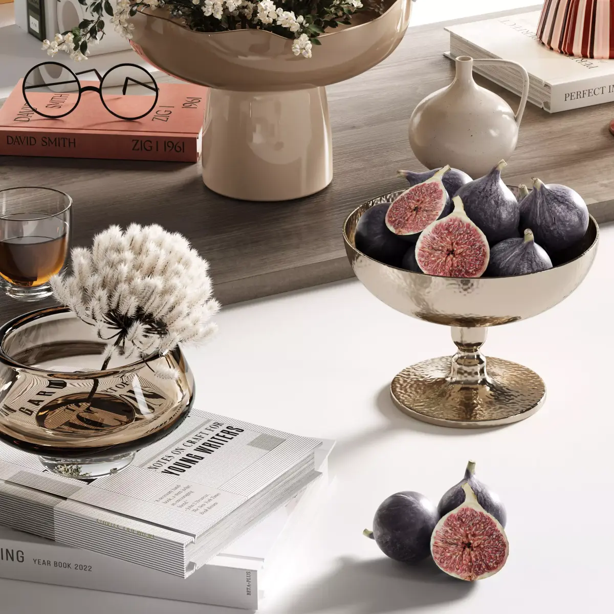 Decorative Set 52 include Porcelan Vase with Flowers, Books, Jug and Glass, Bowl of Figs ,Vintage Table Lamp and Other Decorative Items Used in Vintage Styles ...