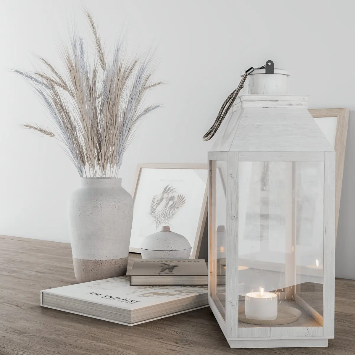 Decorative set Blue Wheat and Lantern 3D model