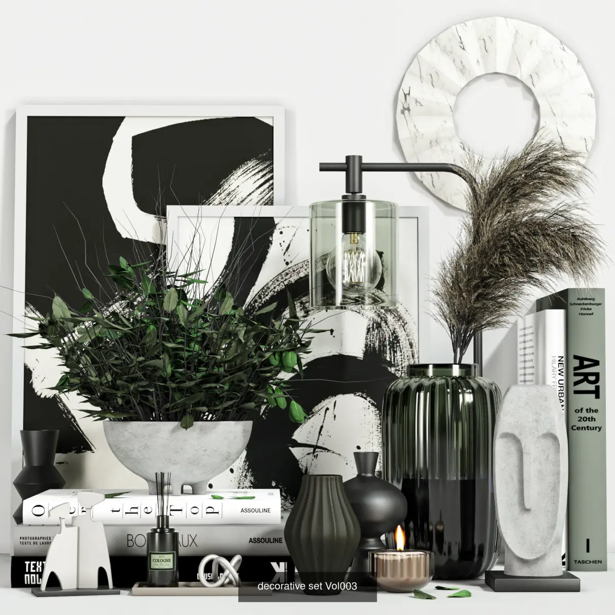collection contain vase, shelf decor, H&M items, plants and ... . detailed enough for close ups..not too heavy for your scenes...there are max files( corona and vray) , OBJ, FBX , material and textures.have a nice render ... :)hope you like it...