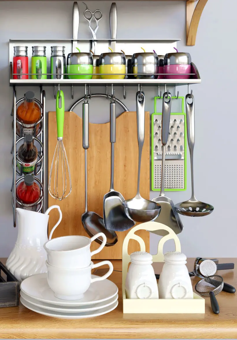 In the archive there are all the objects that are presented in the preview. In the archive there are all materials, objects, textures. This decor is great for a kitchen in cafes / restaurants or home cooking