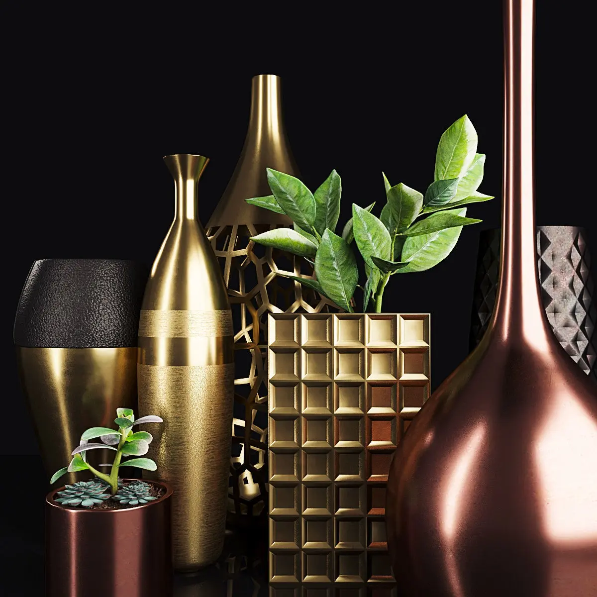HomeCatalogDecorative set gold vase with flower in it 3D model