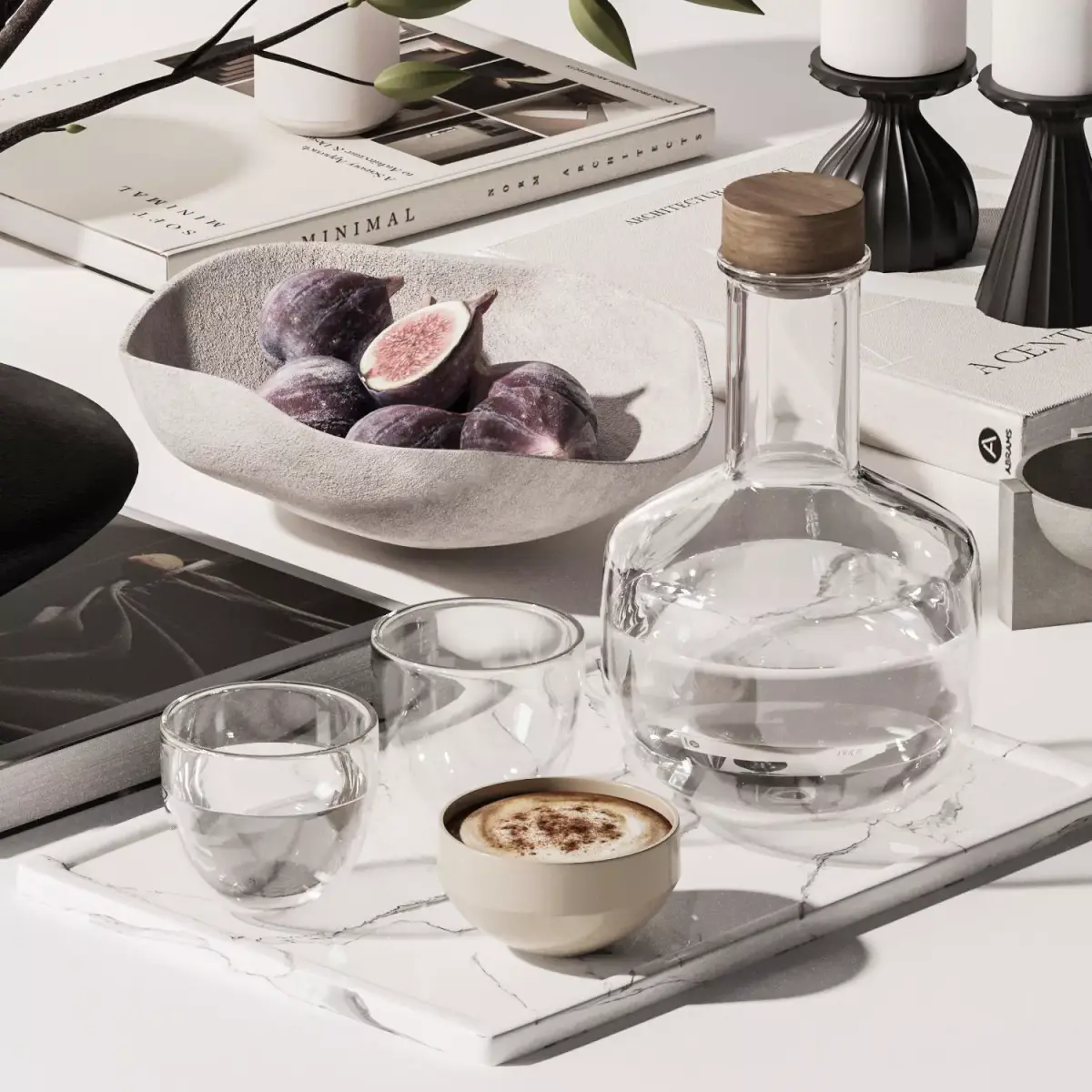 Decorative set H14with branches and books for a dressing table or coffee table.