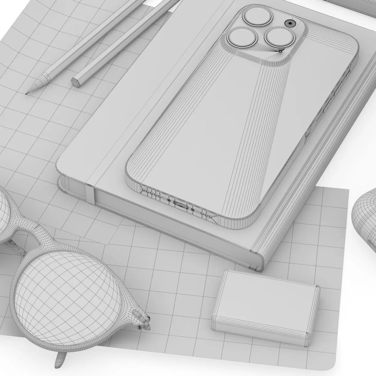 Some objects have a Turbosmooth modifier applied to them during rendering (geometry for anti-aliasing).