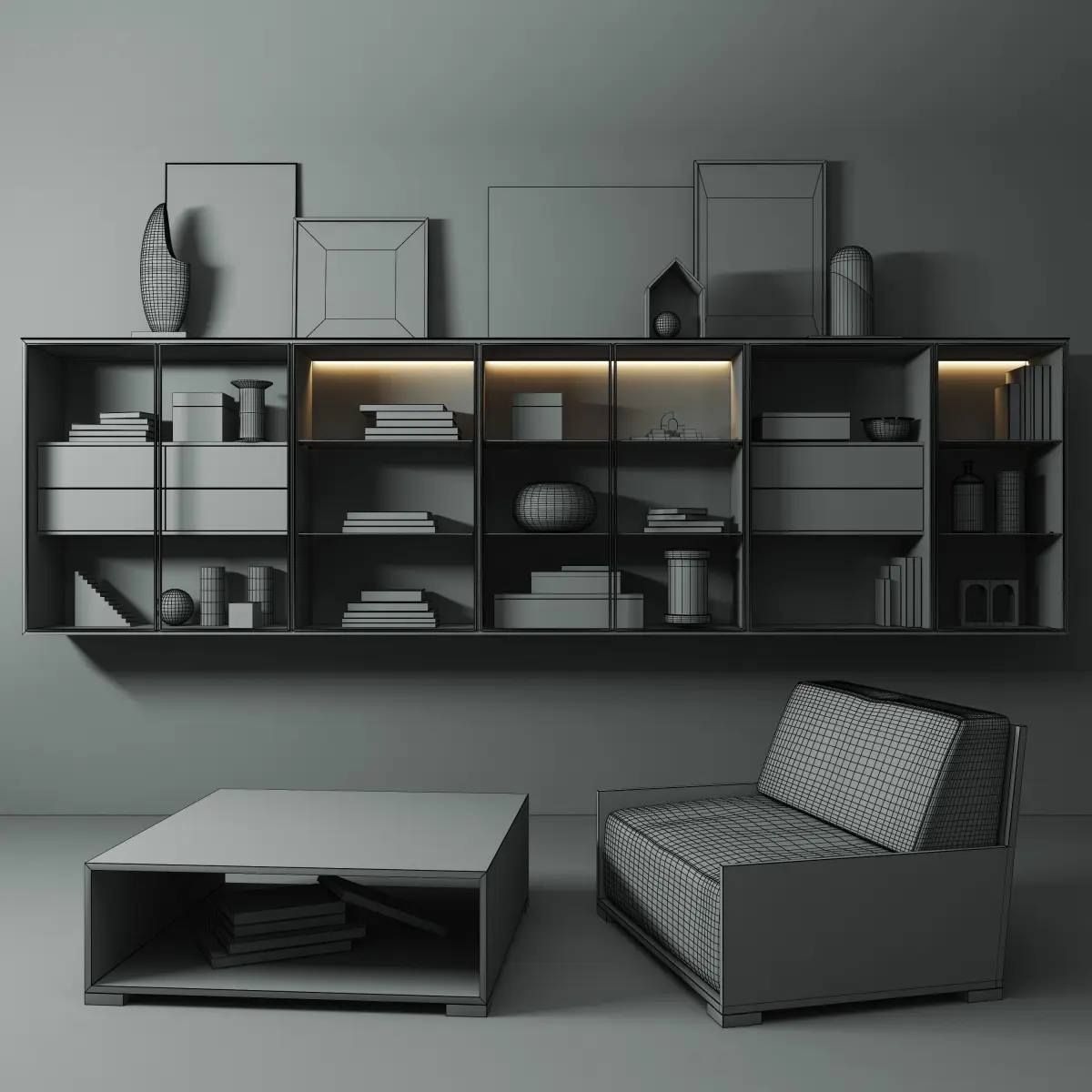 Decorative Set modern living room with furniture and bookshelves 3D model