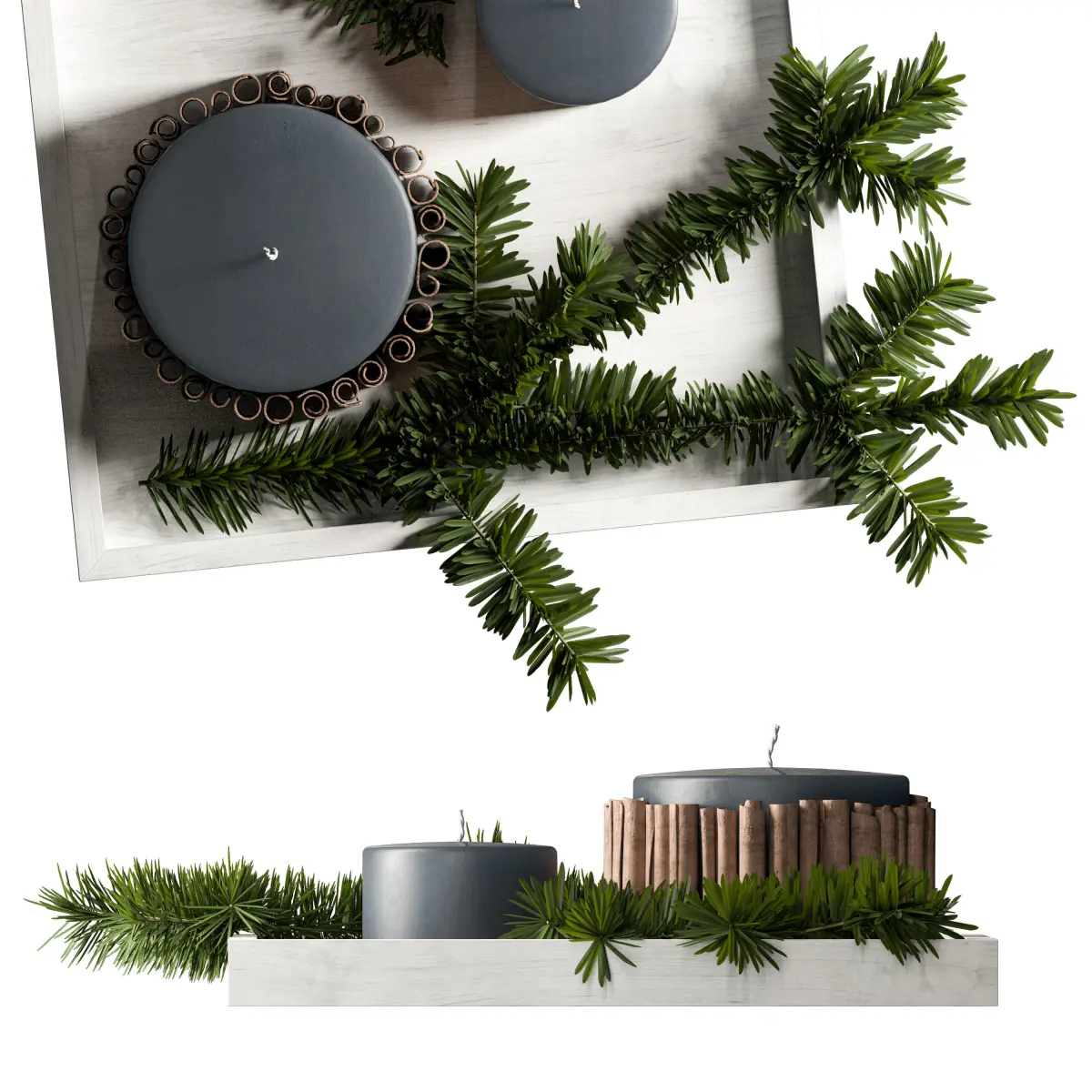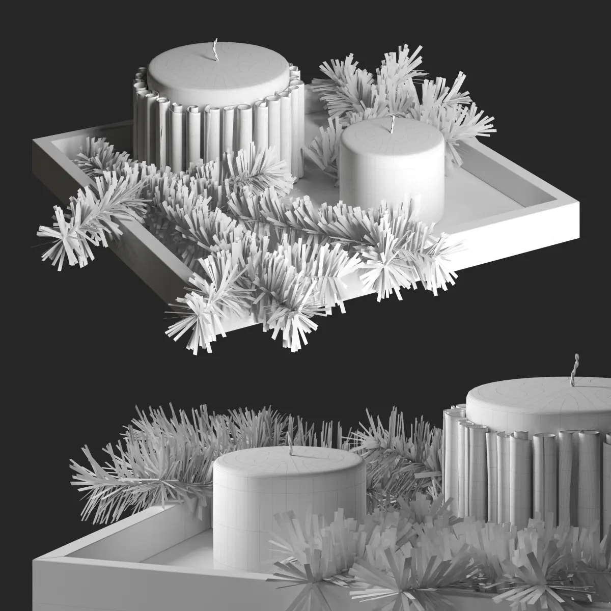 Decorative set of candles on tray 3D model