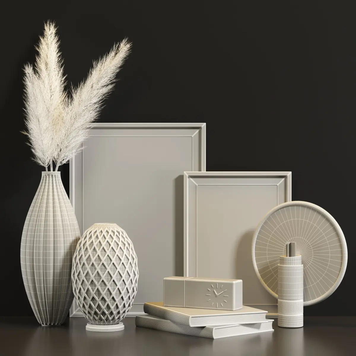 Name: Decorative_Set_Qr01Version: 2015Preview: YesUnits: CentimetersDimension: 67.12 x 31.67 x 63.07Polys: 670 444Model Parts: 11Render: Corona & VrayFormats: 3Ds Max 2015, OBJ