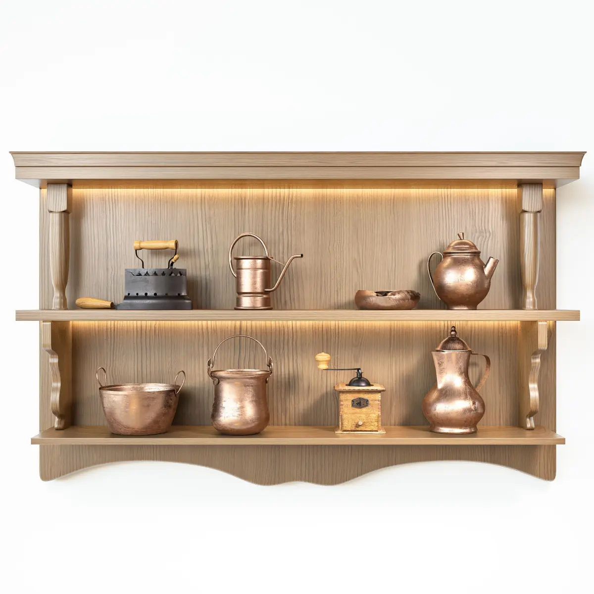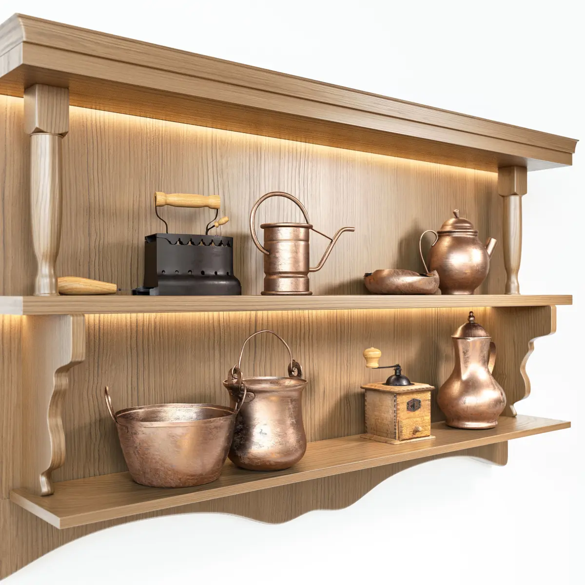 ABOUTThis is 3D model of rustic / mountain style decorative set.The set containts 8 decorative objects + 1 wooden shelf. All models are carefully created according to their real world references.