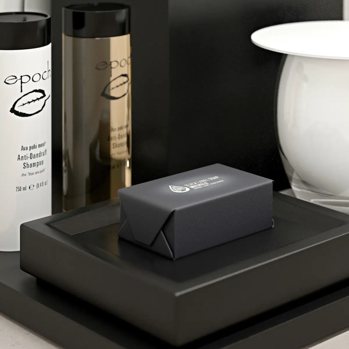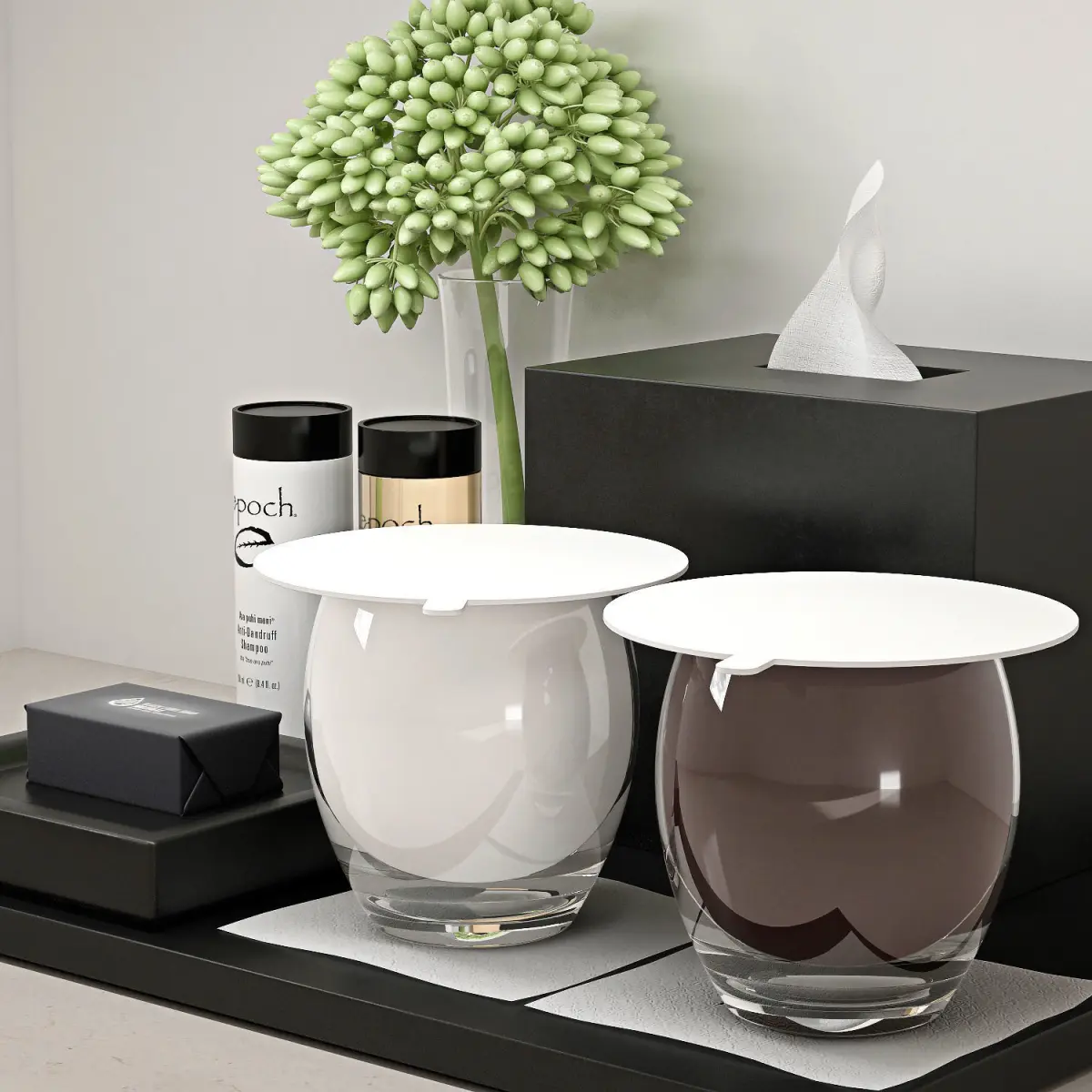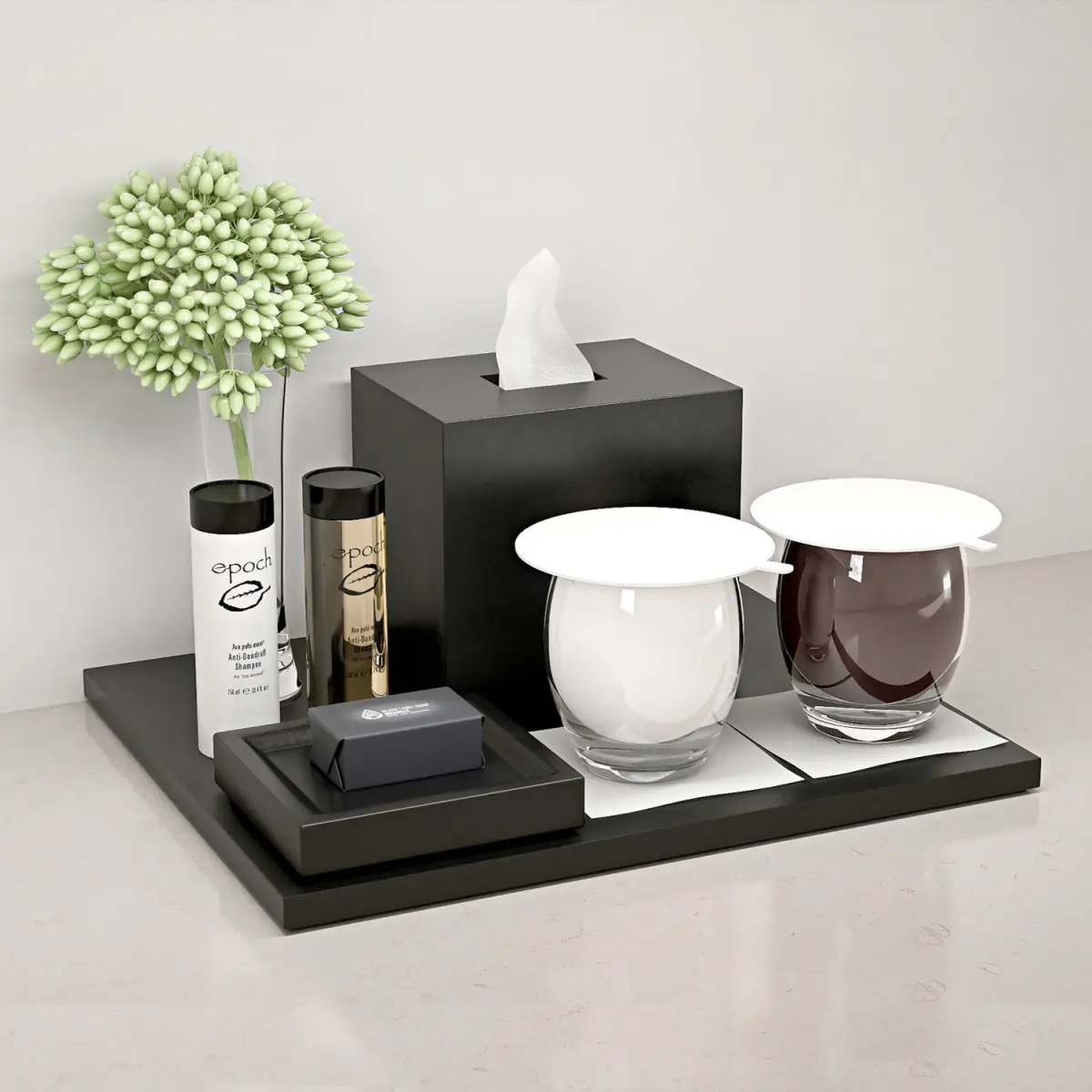 decorative set toiletry tray with two cups and tissue 3D model