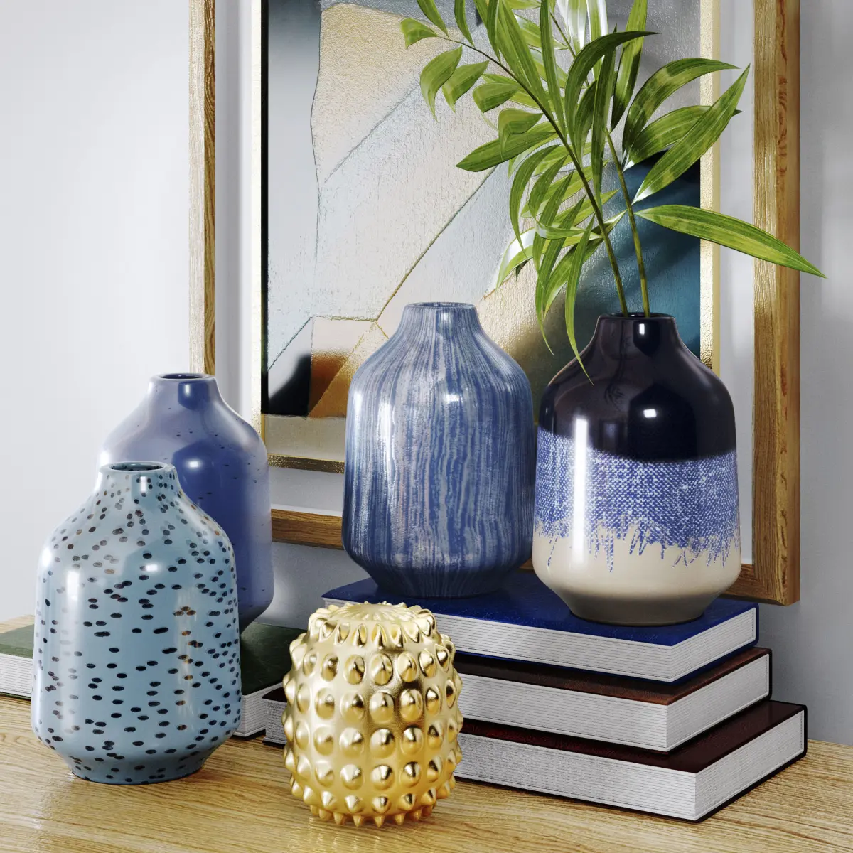 decorative set vases on shelf with painting 3D model