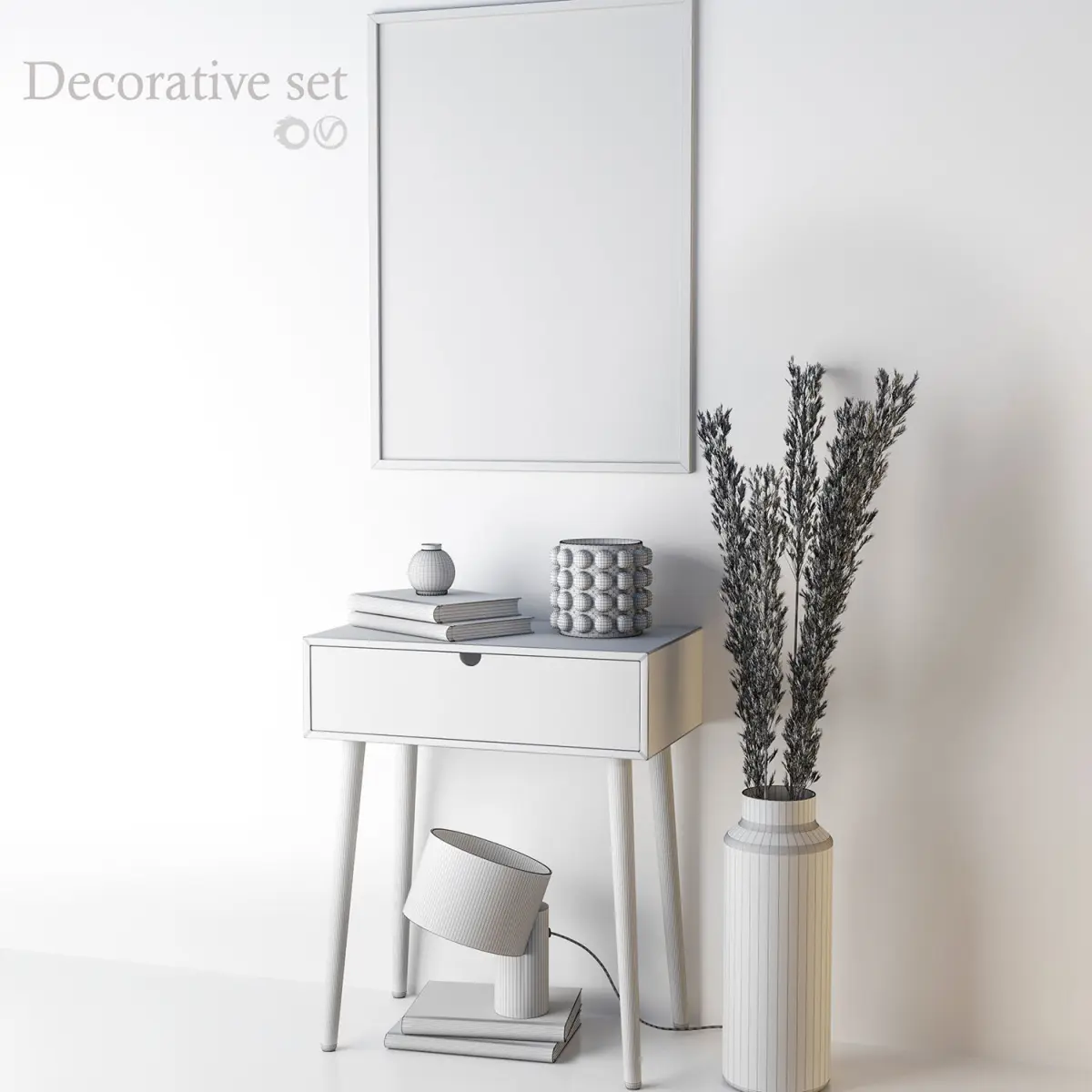 A decorative set for interior design. It is suitable for living room and bedroom. All objects in the scene are logically named. The archive file Max 2016 (Corona + Vray) , fbx (Corona + Vray) , preview and textures.
